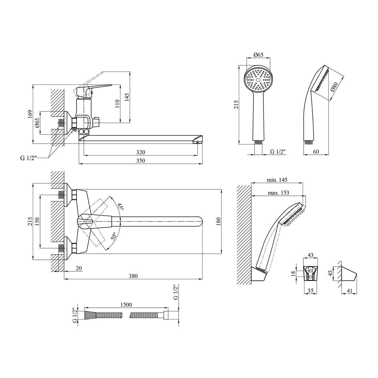 Длина душевого шланга, мм1500