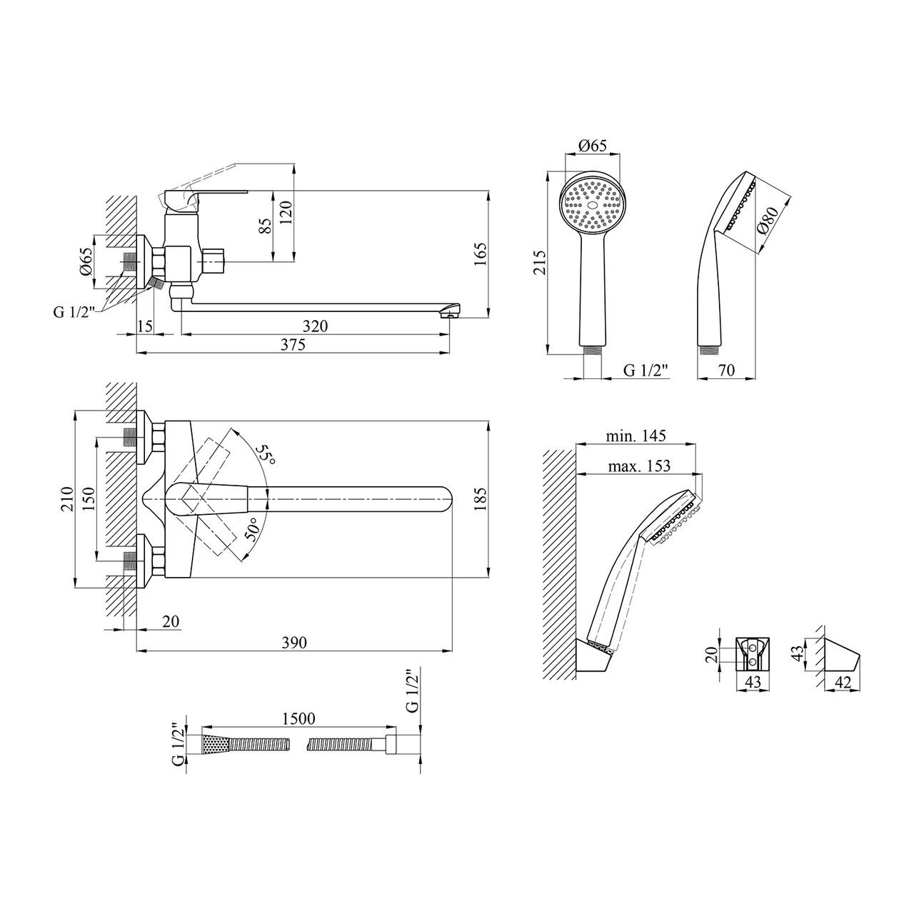 ОбладнанняСмеситель, лейка для ручного душа, душевой шланг, кронштейн для ручного душа, крепежи, инструкция.