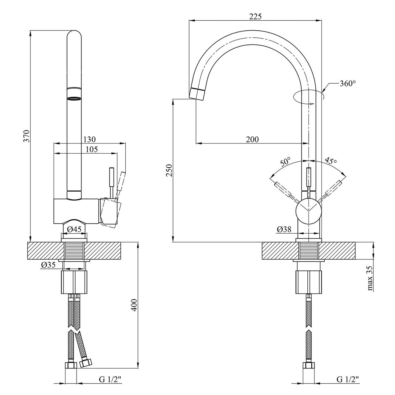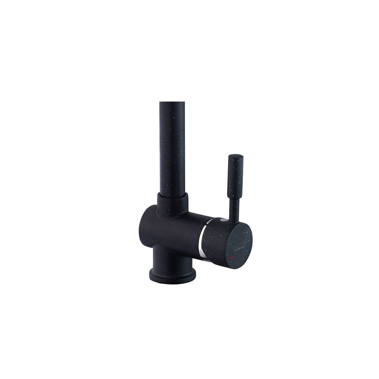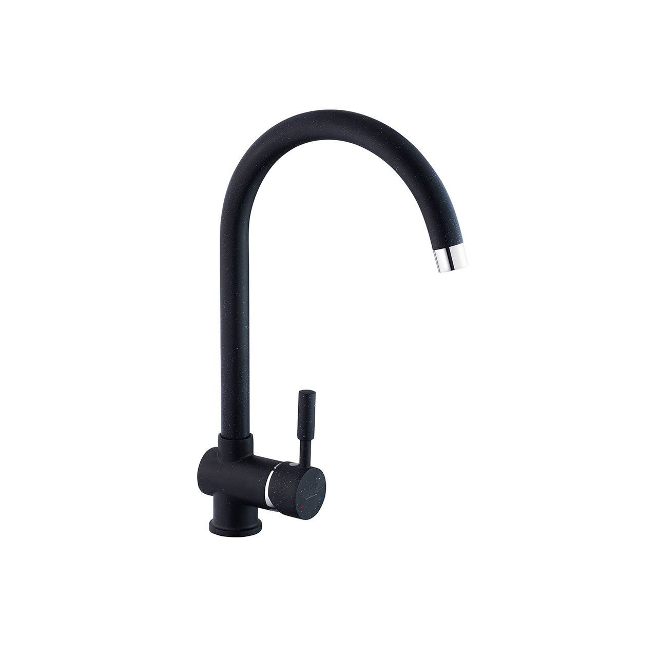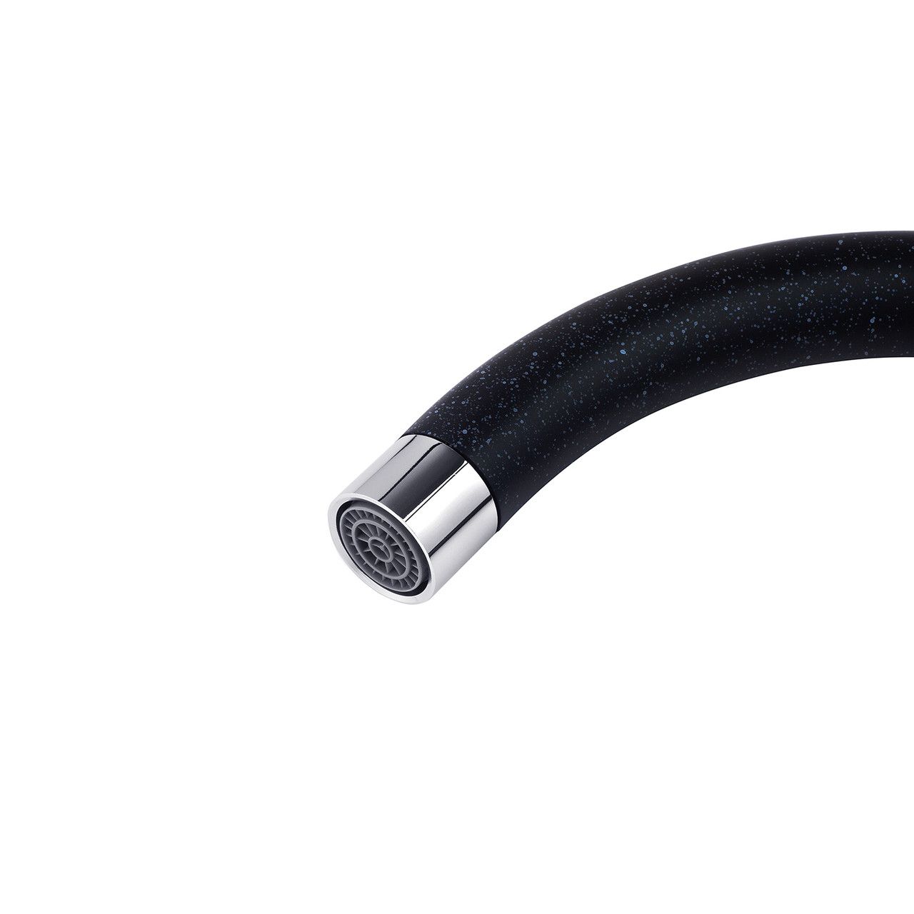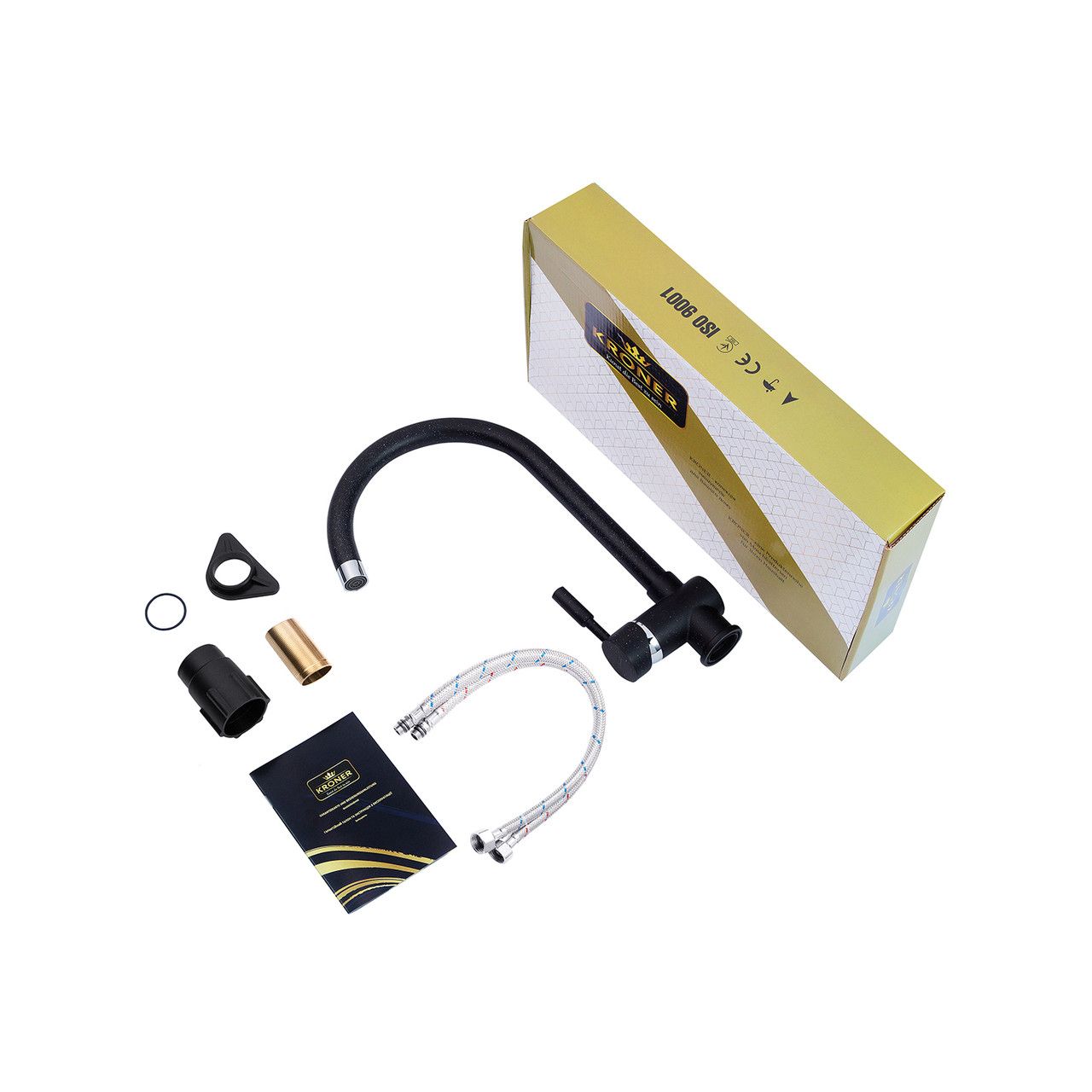 Змішувач для кухні Kroner KRM Mosel — B035 — ідеальний вибір для вашої кухні. Виготовлений із високоякісного силуміну, гарантує міцність і довговічність. Має привабливий матовий чорний колір, що надає йому елегантності. Змішувач обладнаний картриджним механізмом змішування, що дає змогу зручно регулювати температуру води. Його унікальна U-подібна форма виливу забезпечує зручність під час наповнення посуду або миття продуктів. Насолоджуйтеся комфортом і зручністю використання разом із Kroner.