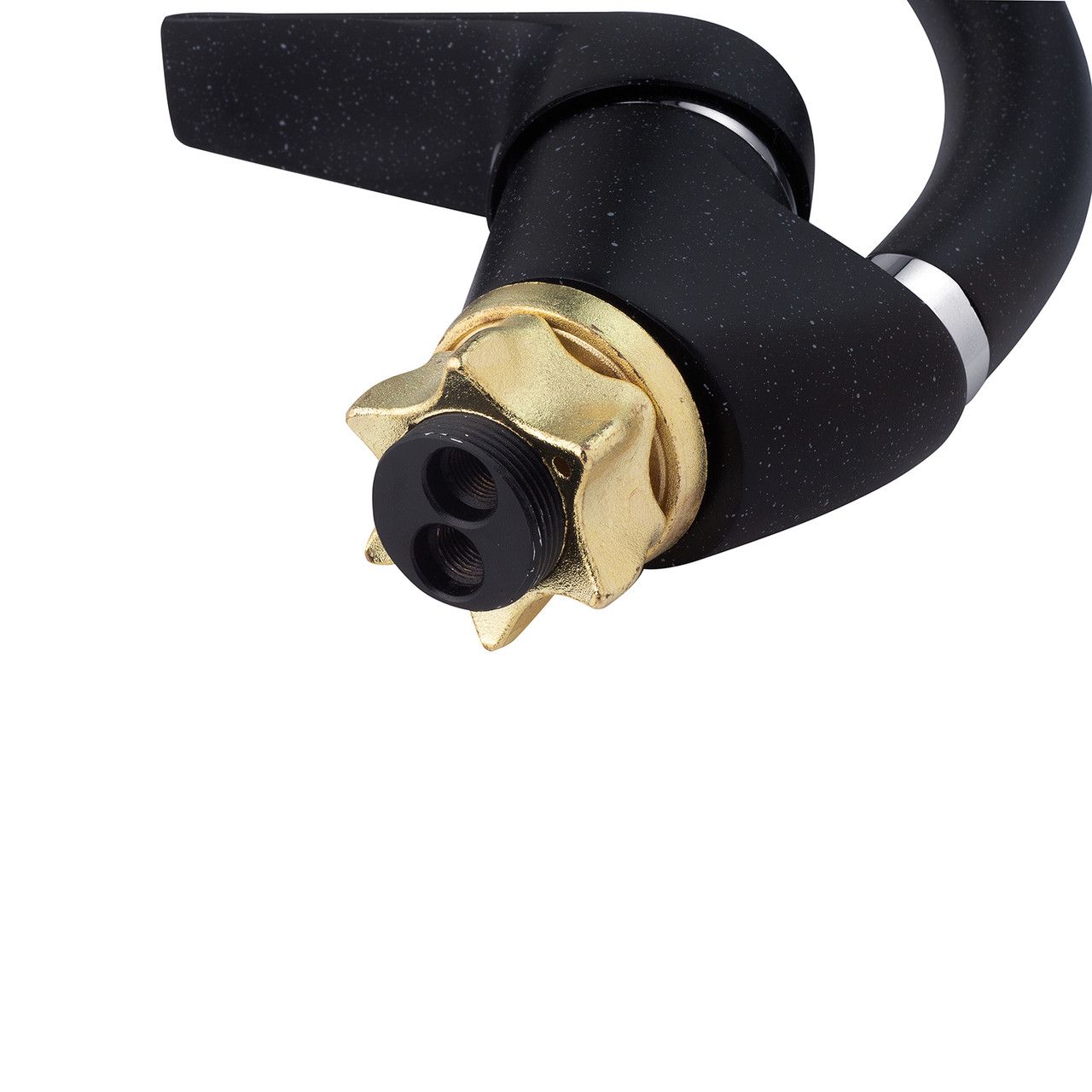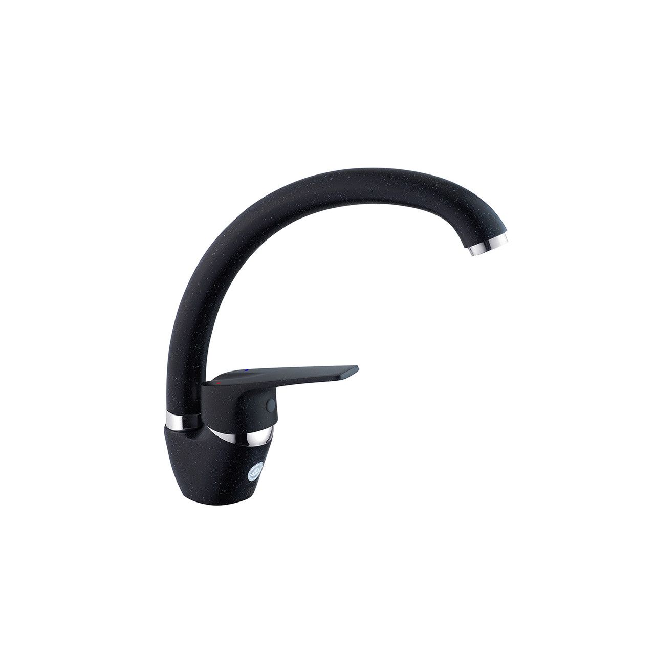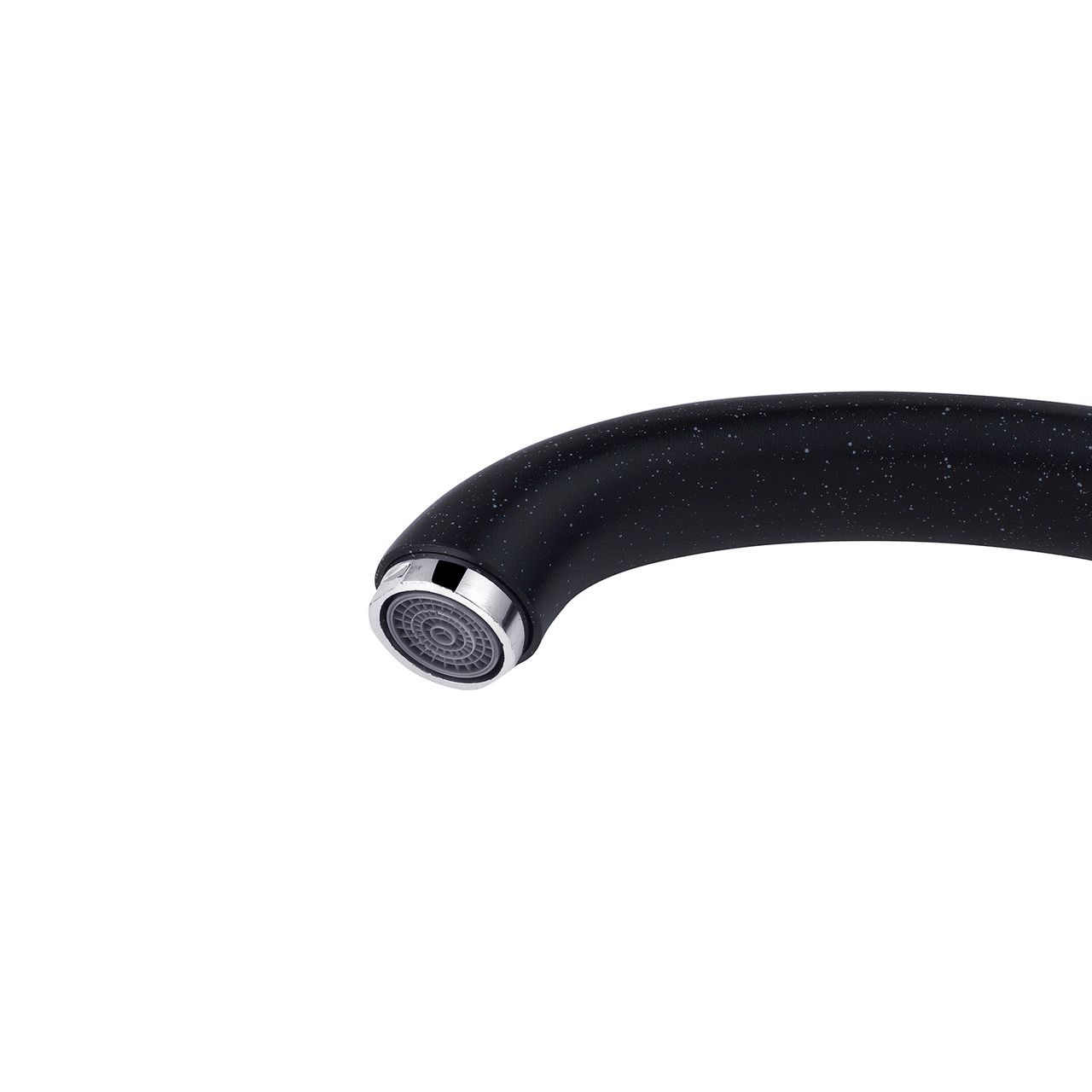 Змішувач для кухні Kroner KRM Odra-B035 — ідеальний вибір для вашої кухні. Виготовлений із високоякісного силуміну, гарантує міцність і довговічність. Має привабливий матовий чорний колір, що надає йому елегантності. Змішувач обладнаний картриджним механізмом змішування, що дає змогу зручно регулювати температуру води. Його унікальна С-подібна форма виливу забезпечує зручність під час наповнення посуду або миття продуктів. Насолоджуйтеся функціональністю й стилем змішувача Kroner.