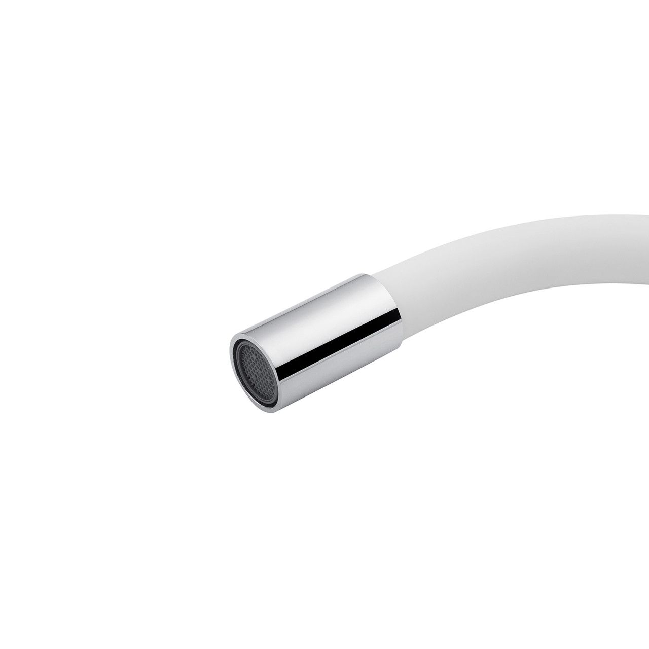 Змішувач для кухні Kroner KRM Odra — C032WHI — ідеальний вибір для вашої кухні. Виготовлений із високоякісного силуміну, гарантує міцність і довговічність. Має привабливий глянсовий хромований-білий колір, що надає йому елегантності. Змішувач обладнаний картриджним механізмом змішування, що дає змогу зручно регулювати температуру води. Його унікальна U-подібна форма виливу забезпечує зручність під час наповнення посуду або миття продуктів. Насолоджуйтеся функціональністю й стилем змішувача Kroner.