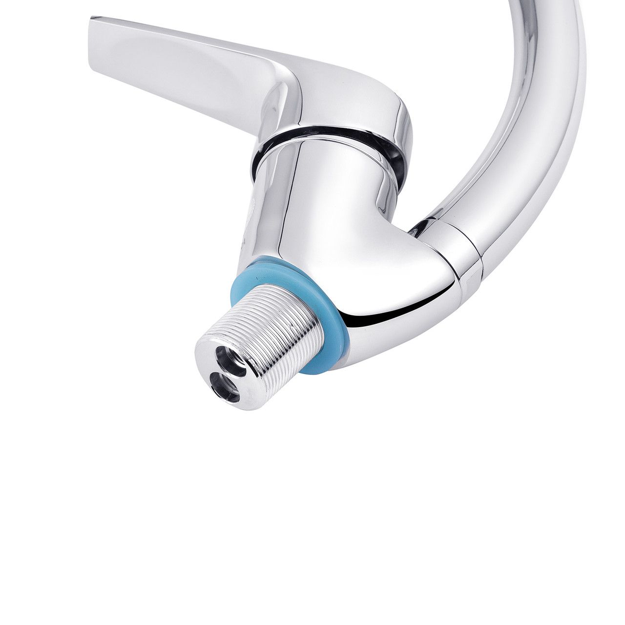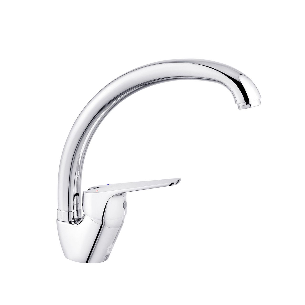 Змішувач для кухні Kroner KRM Odra-C036 — ідеальний вибір для вашої кухні. Виготовлений із високоякісного силуміну, гарантує міцність і довговічність. Має привабливий глянсовий хромований колір, що надає йому елегантності. Змішувач обладнаний картриджним механізмом змішування, що дає змогу зручно регулювати температуру води. Його унікальна С-подібна форма виливу забезпечує зручність під час наповнення посуду або миття продуктів. Насолоджуйтеся функціональністю й стилем змішувача Kroner.