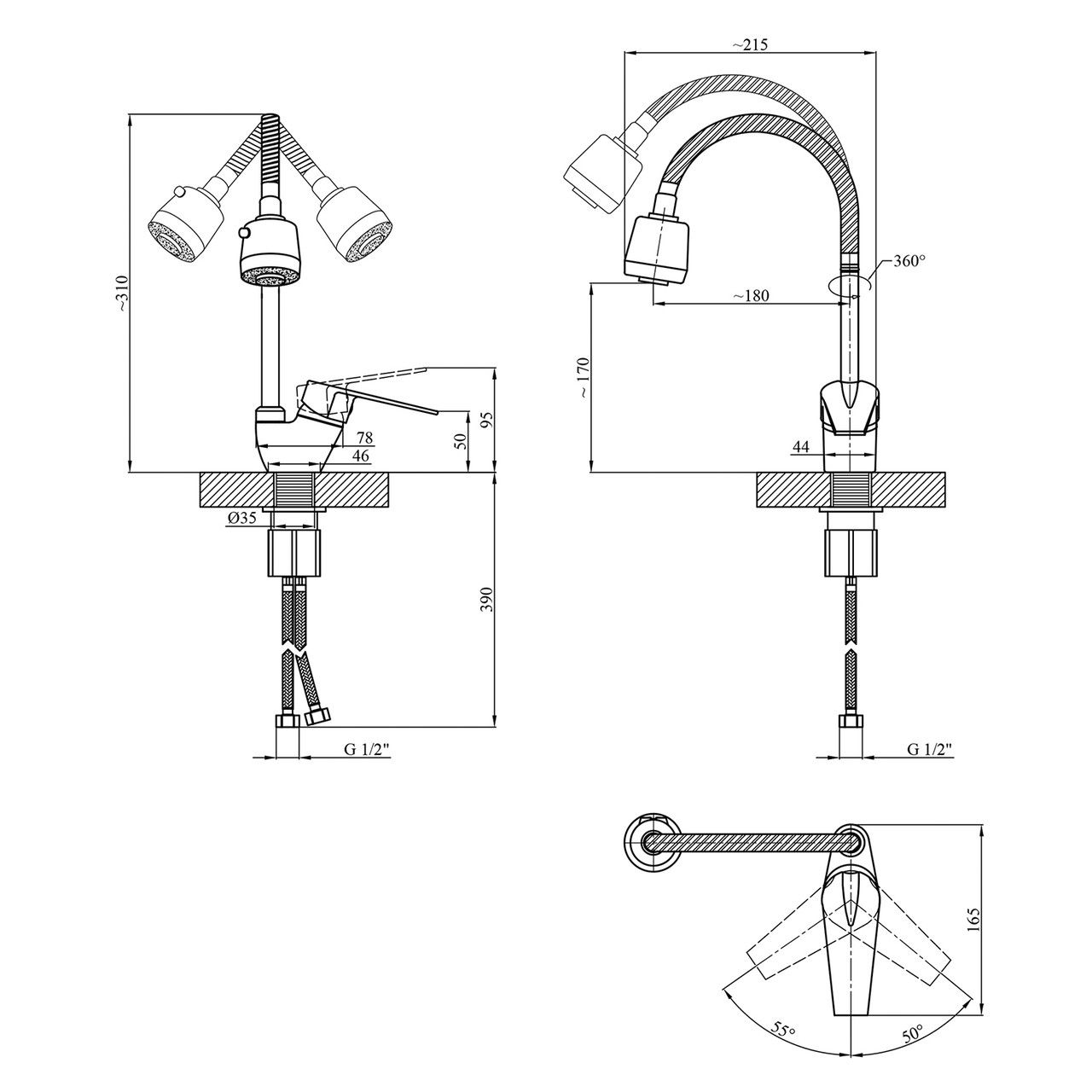 Змішувач для кухні з гнучким виливом Kroner KRM Odra — C038-1