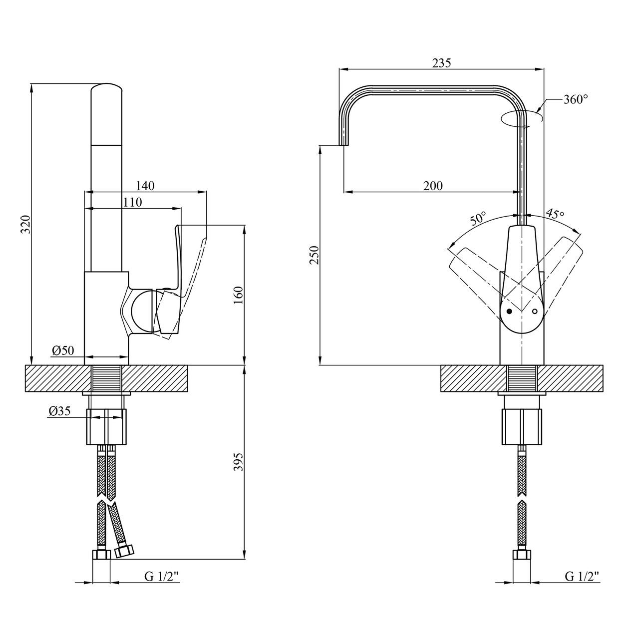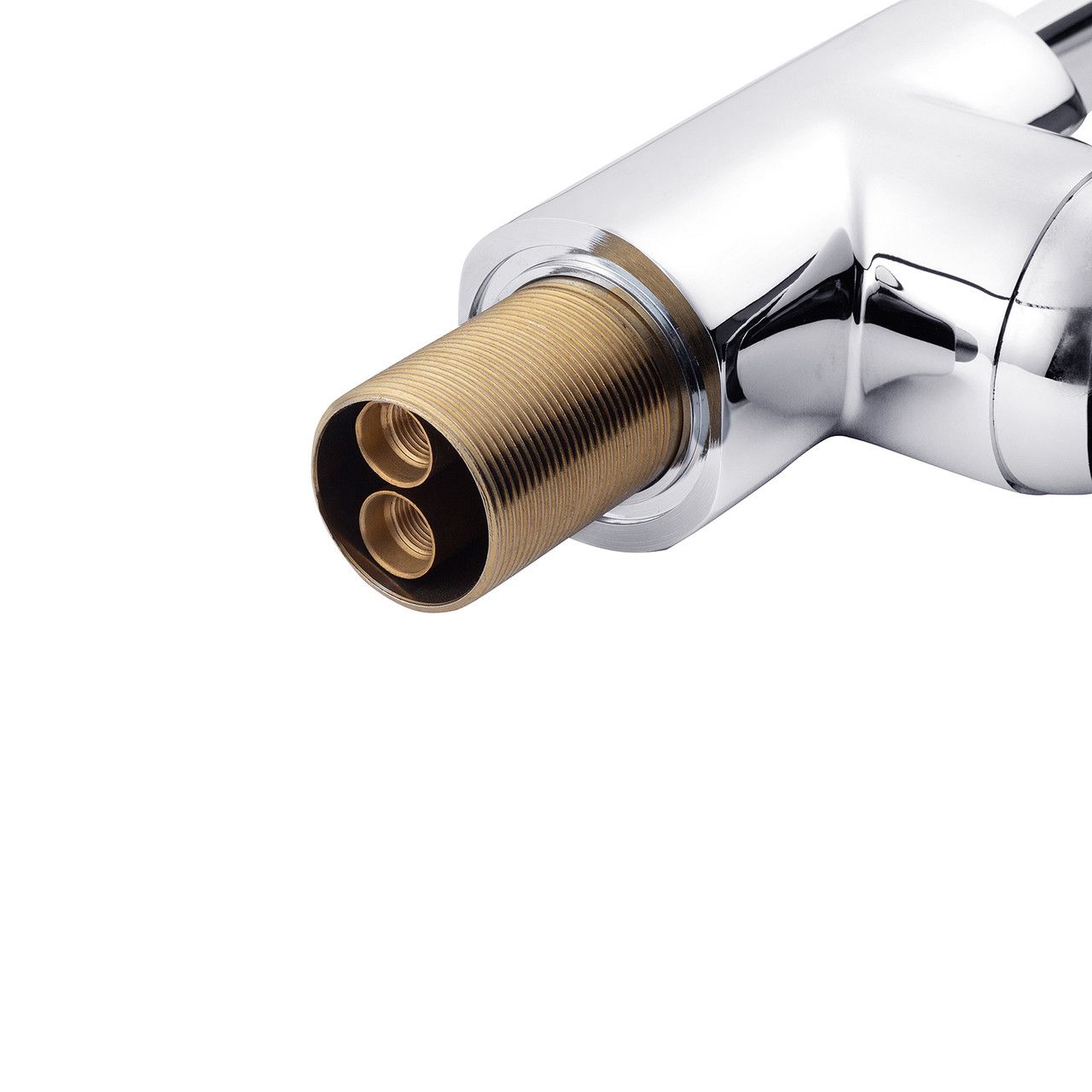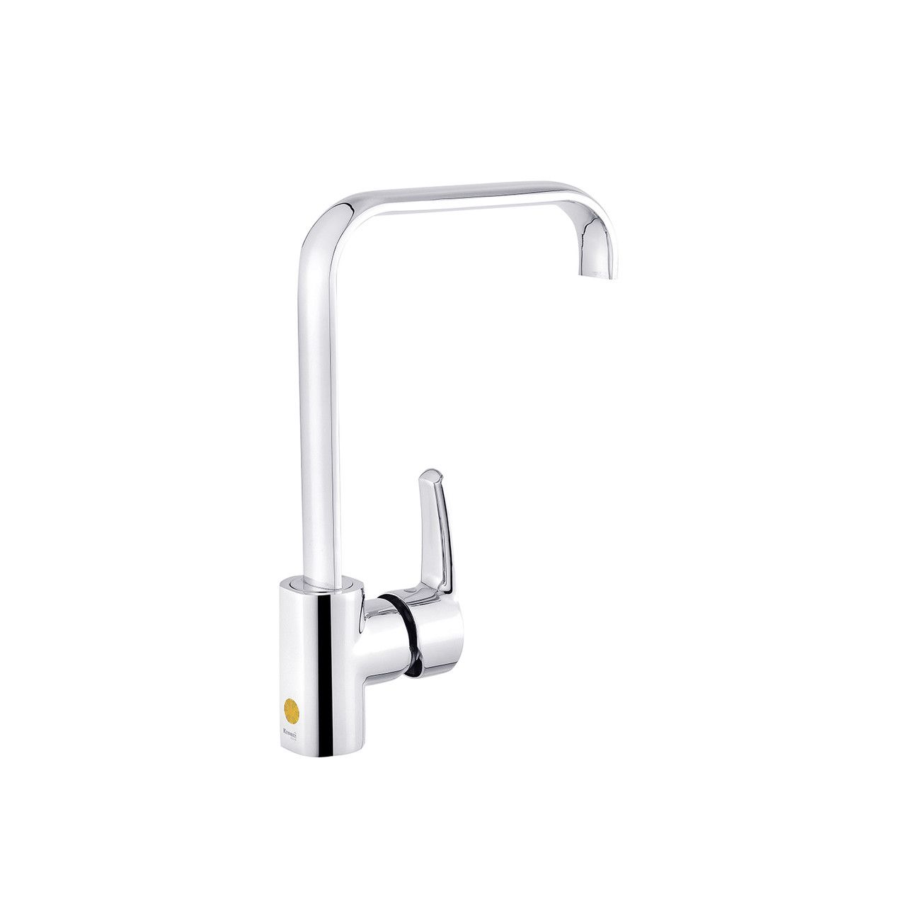 Змішувач для кухні Kroner KRP Küche — C037 — ідеальний вибір для вашої кухні. Виготовлений із високоякісної латуні, гарантує міцність і довговічність. Має привабливий глянсовий хромований колір, що надає йому елегантності. Змішувач обладнаний картриджним механізмом змішування, що дає змогу зручно регулювати температуру води. Його унікальна Г-подібна форма виливу забезпечує зручність під час наповнення посуду або миття продуктів. Насолоджуйтеся функціональністю й стилем змішувача Kroner.