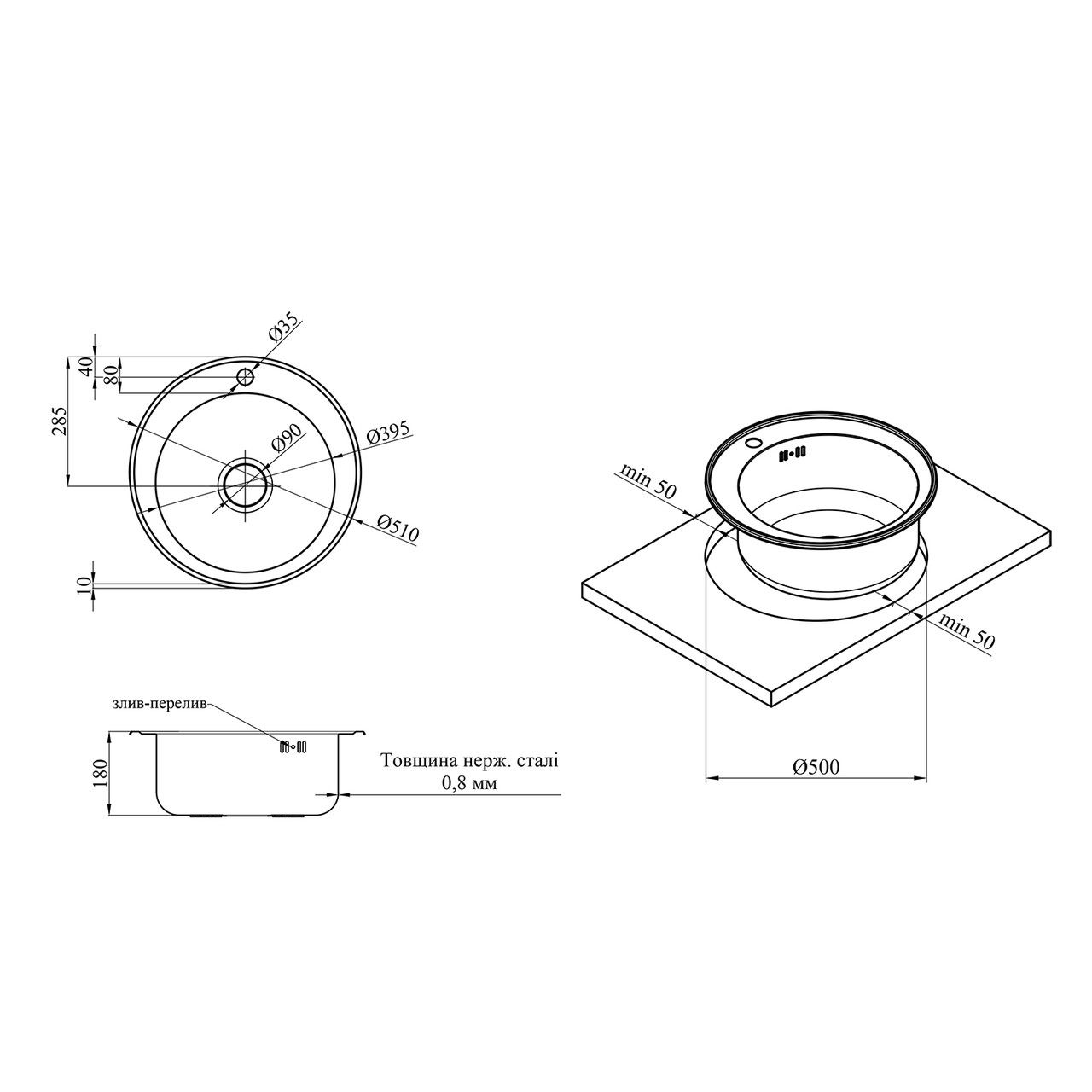 Діаметр зливу, мм90