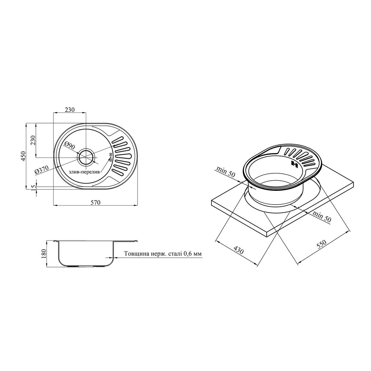 Кухонна мийка Kroner KRP Satin — 5745 (0.6 мм)