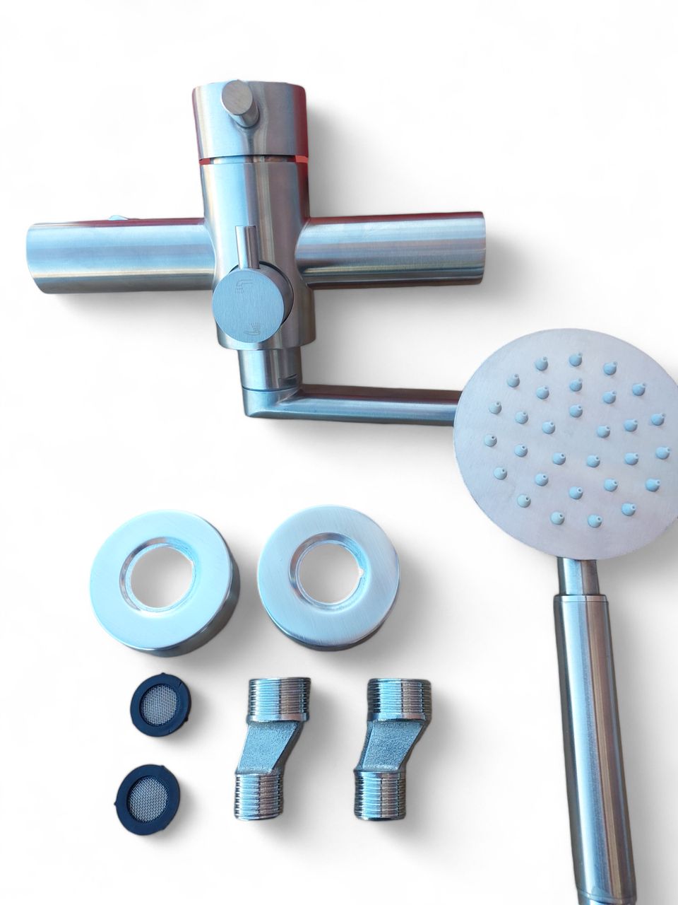 функціональність — наявність вбудованого аератора та дивіатора, має ручний душ, тримач лійки та 1,5 м шланг;