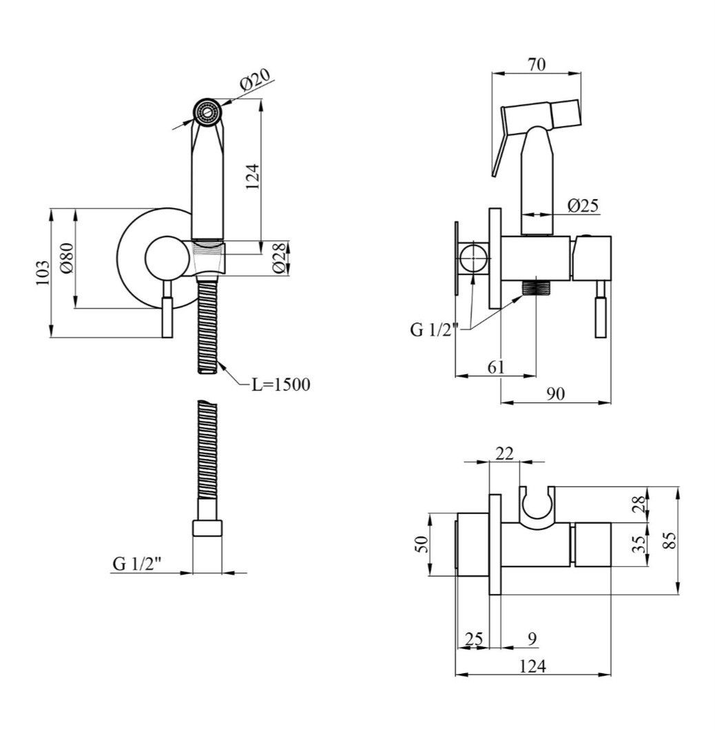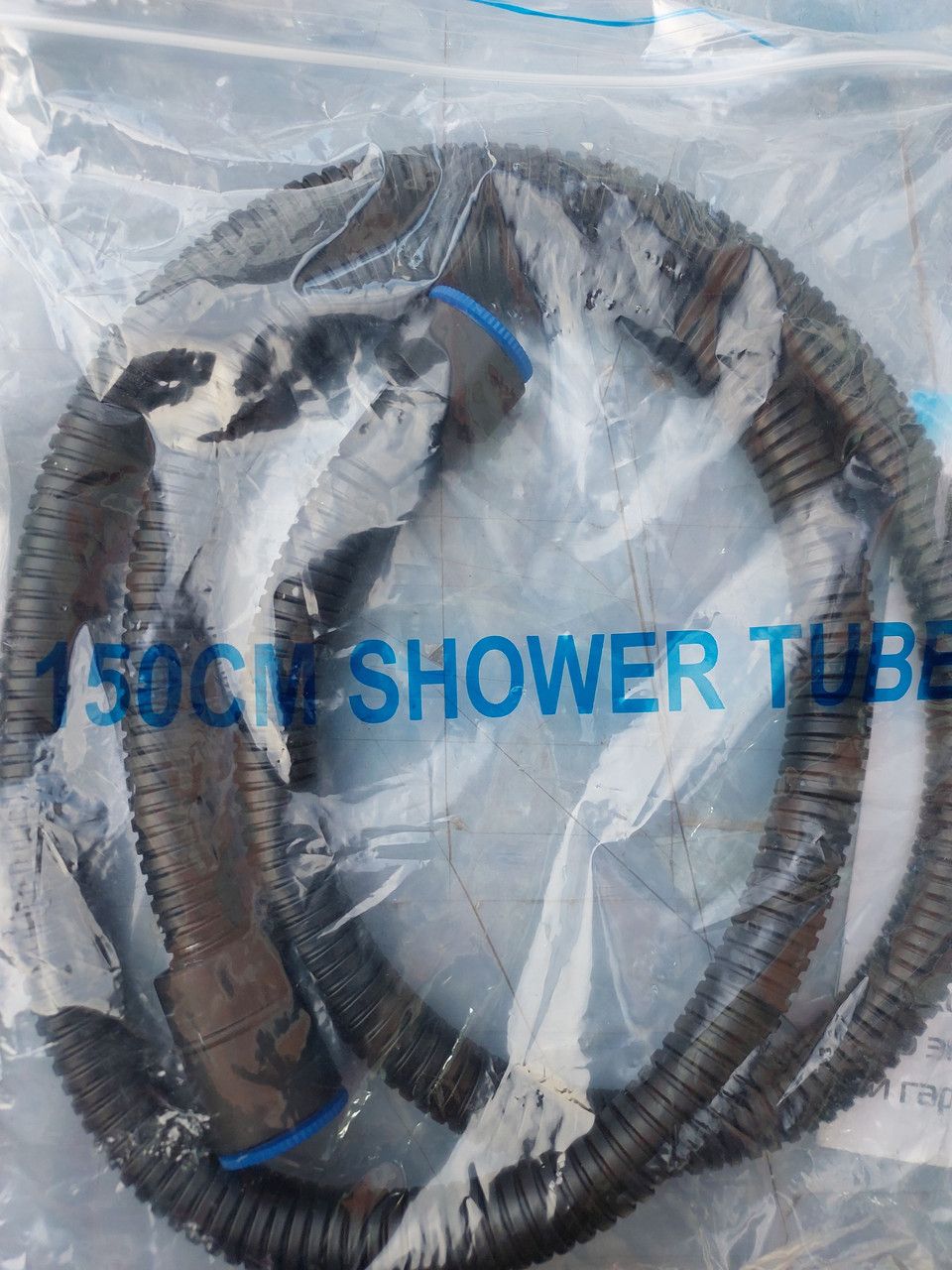 Монтаж змішувача виробляється в стіну, у комплекті йдуть шланг і лійка чорного кольору.