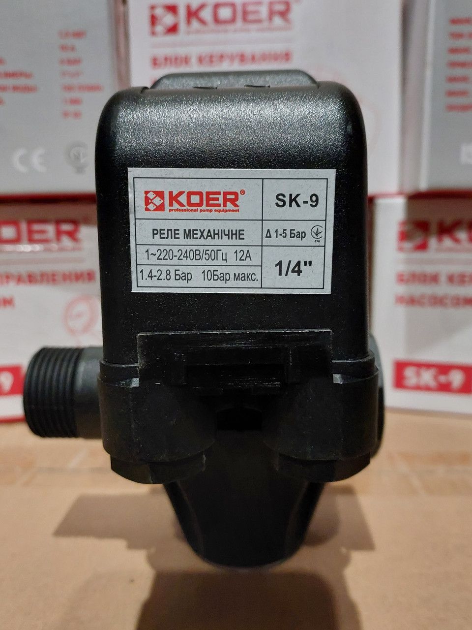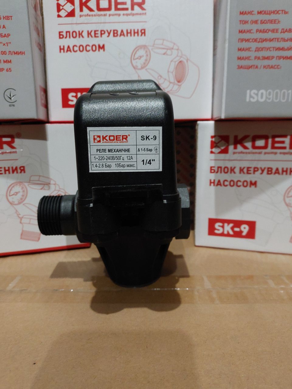 Реле тиску KOER SK-9 призначене для автоматизації роботи електронасоса, включаючи його при зниженні тиску (відкриття кранів) у системі водопостачання нижче встановленої межі, та відключаючи електронасос при досягненні верхньої встановленої межі (закриття кранів). особливості: Захист від сухого ходу Невибагливість до умов роботи Висока точність Мала вага та розміри Надійність та тривалий термін служби Характеристики: Максимальна сила струму: 12 А Робочий діапазон тиску: 1,4-2,8 бар Напруга мережі: 220 В Ступінь захисту: IP 54Відгуки про товар