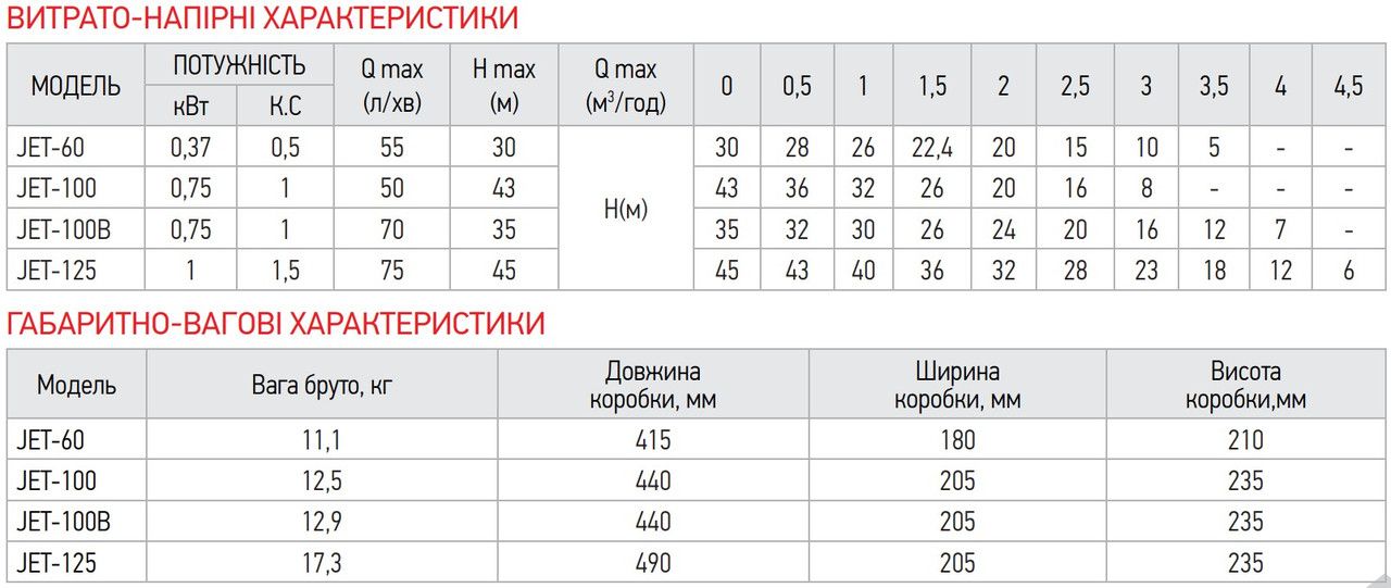 Насос поверхневий відцентровий самовсмоктуючий JET 100 0.75 кВт Чехія