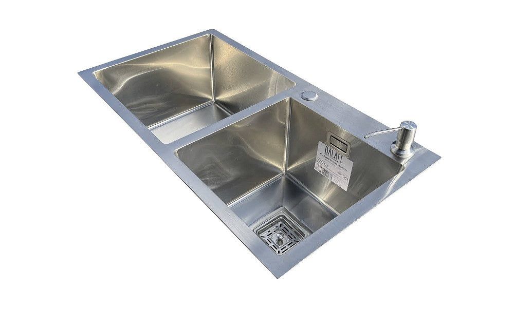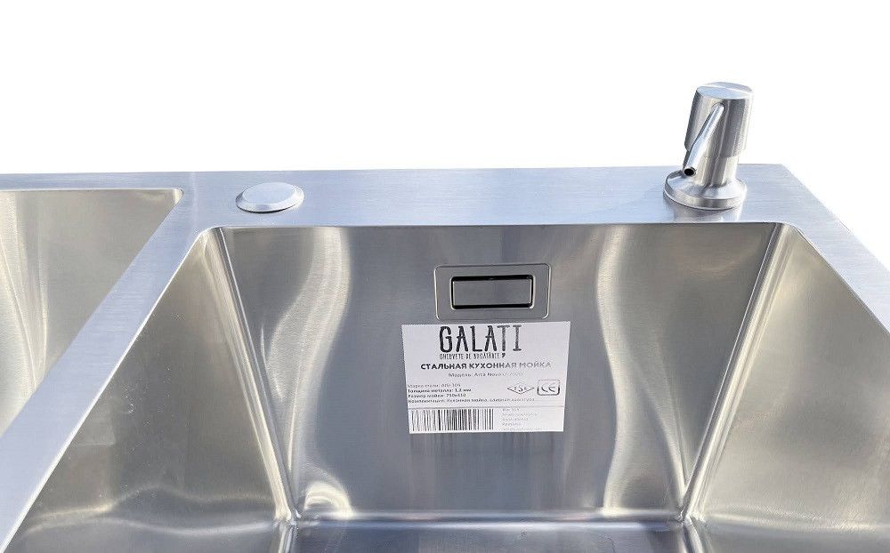 Комплектація: кухонна мийка, сифон, армованний гофро-шланг, корзина з нержавіючої сталі та дозатор для рідкого миючого засобу