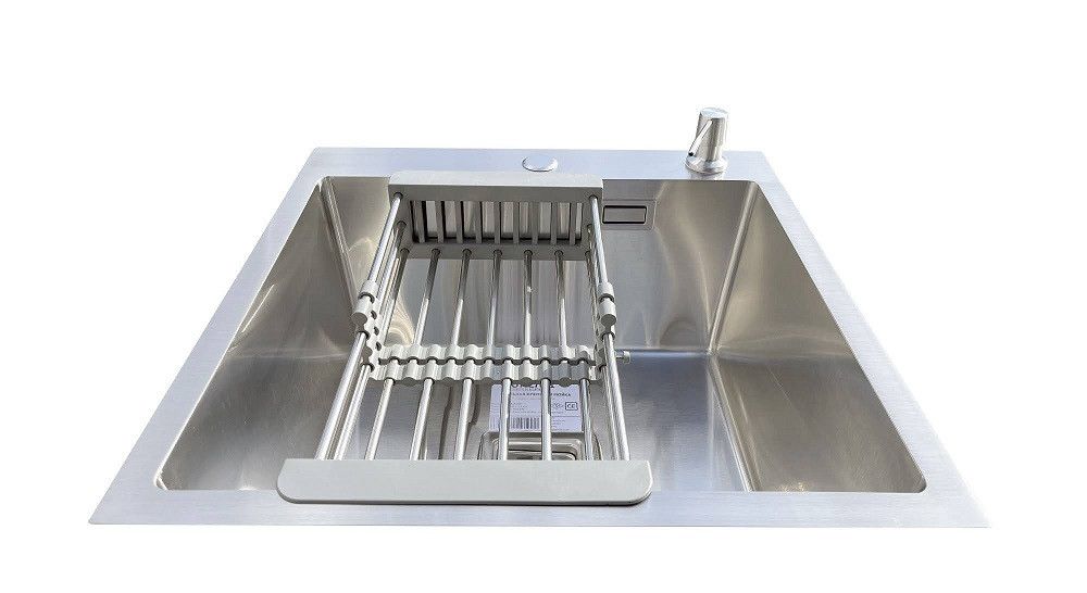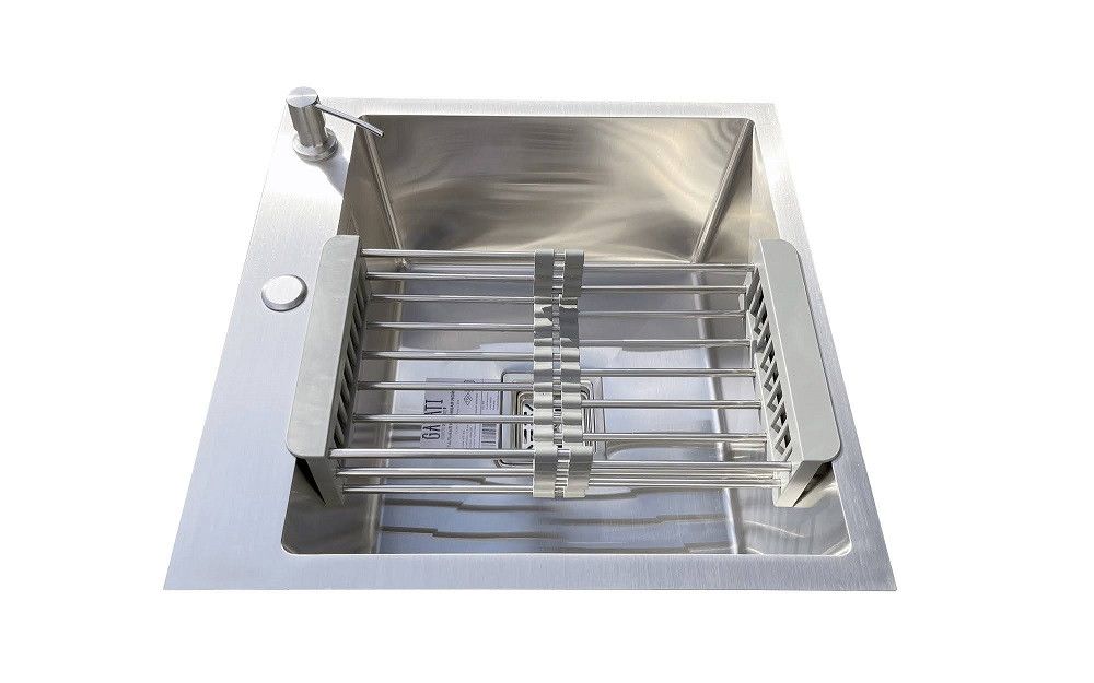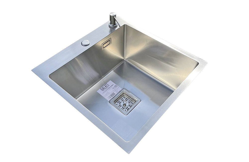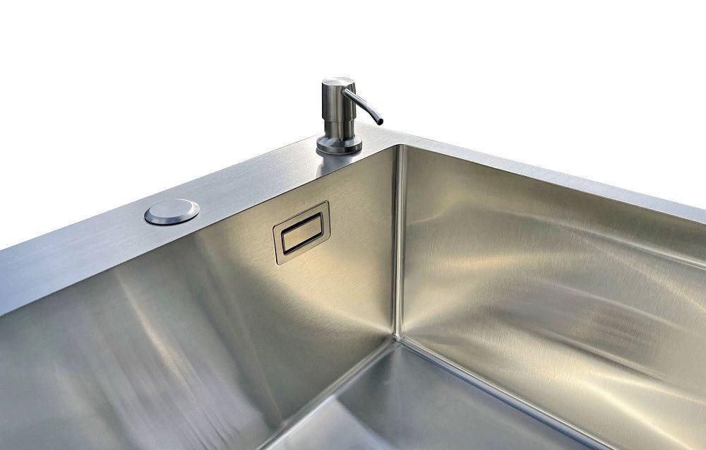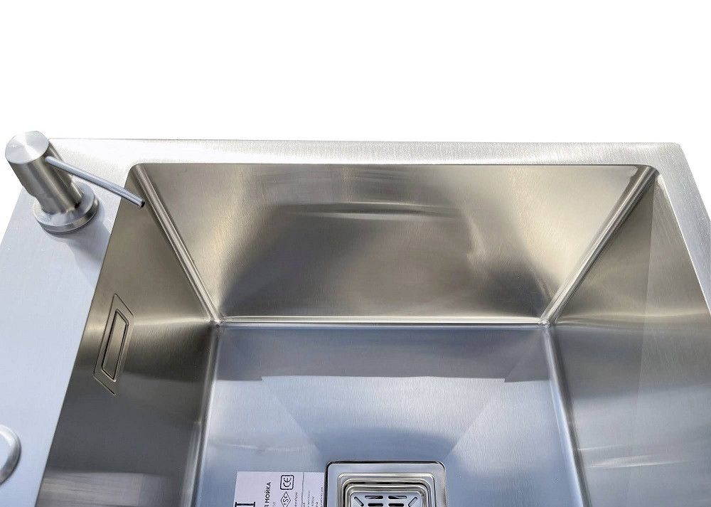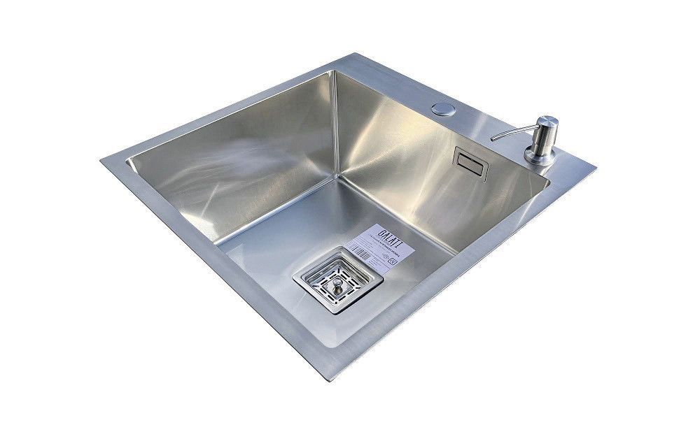 Комплектація: кухонна мийка, сифон, армованний гофро-шланг, корзина з нержавіючої сталі та дозатор для рідкого миючого засобу