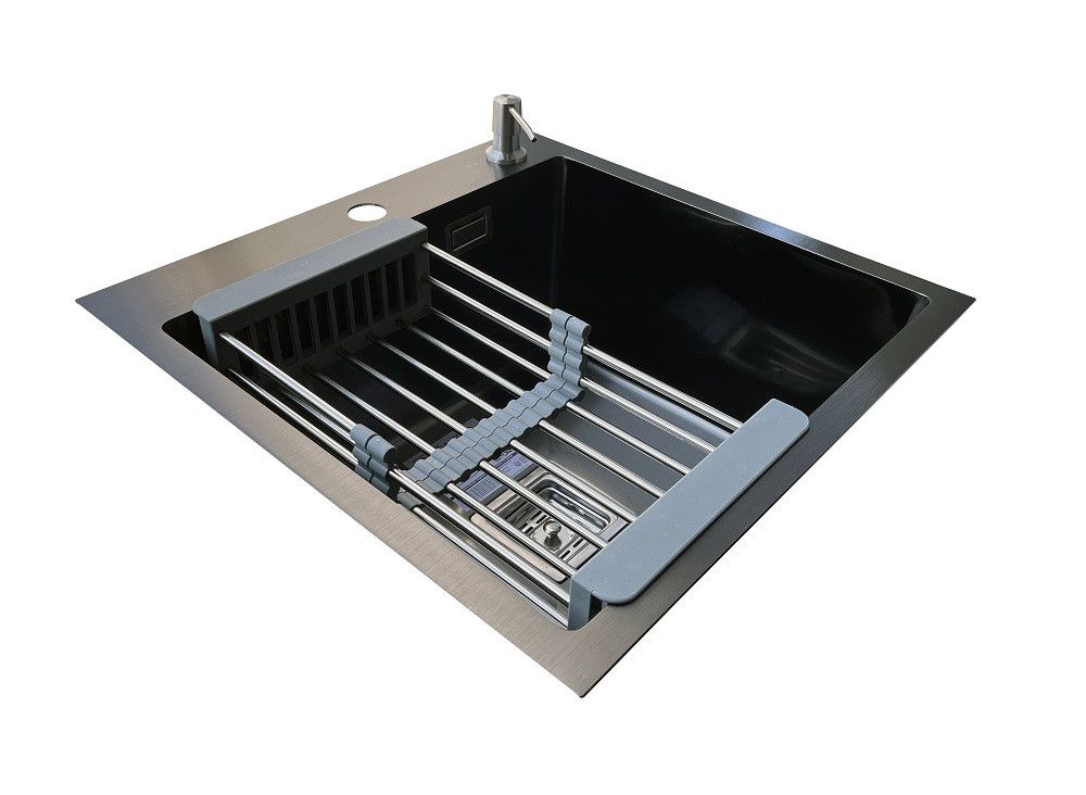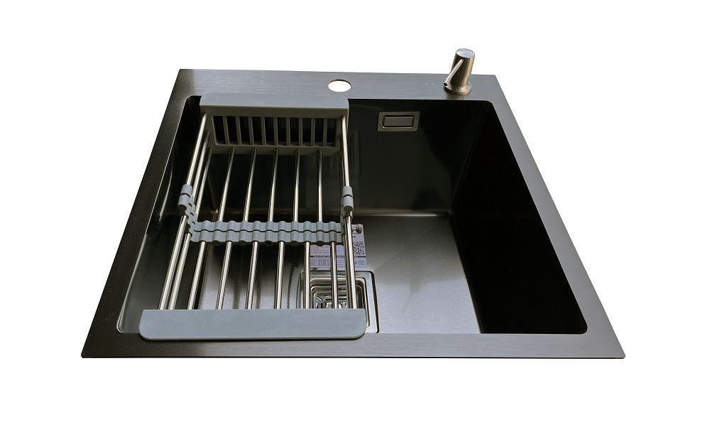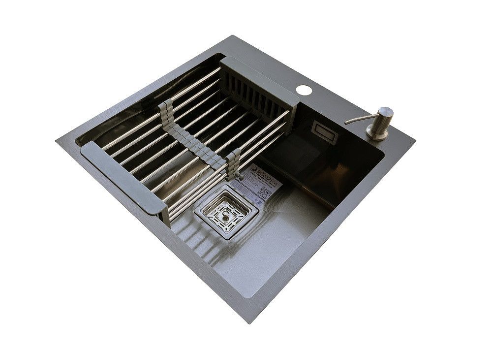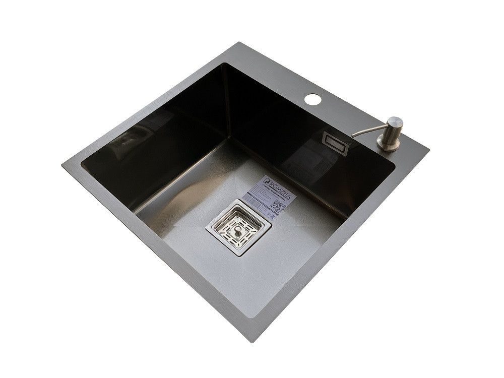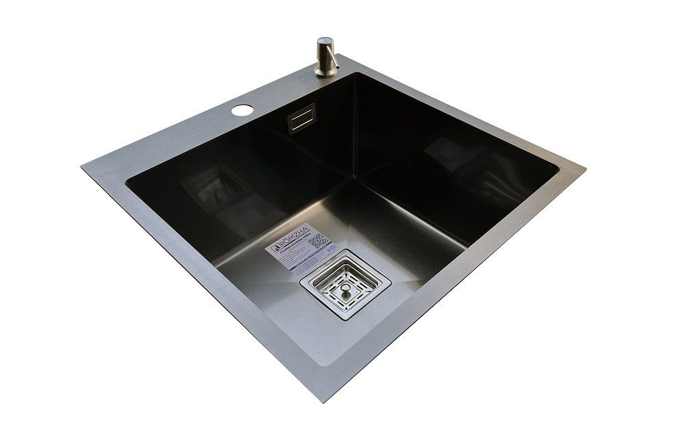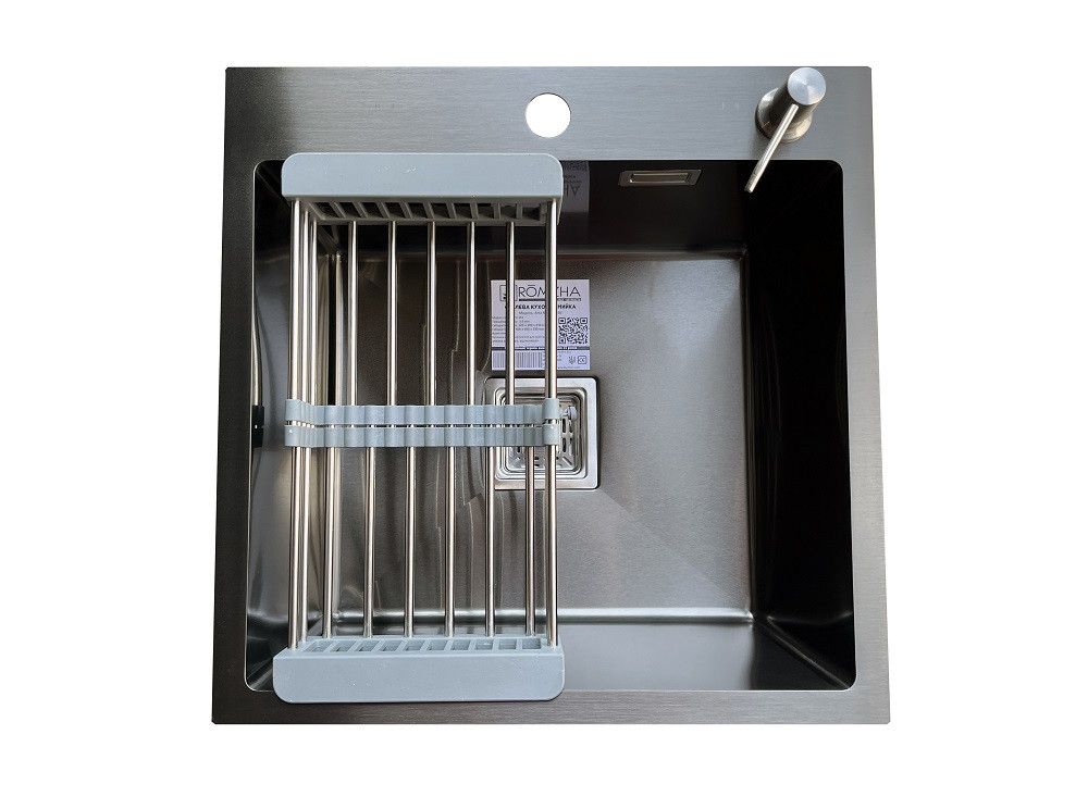 Комплектація: кухонна мийка, сифон, армованний гофро-шланг, корзина з нержавіючої сталі та дозатор для рідкого миючого засобу