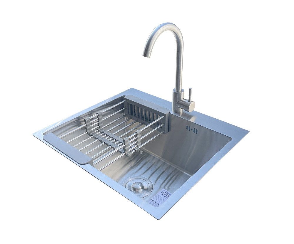 Комплектація: кухонна мийка, сифон, армованний гофро-шланг, корзина з нержавіючої сталі та змішувач Marian J