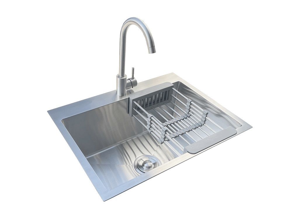 Комплектація: кухонна мийка, сифон, армованний гофро-шланг, корзина з нержавіючої сталі та змішувач Marian J