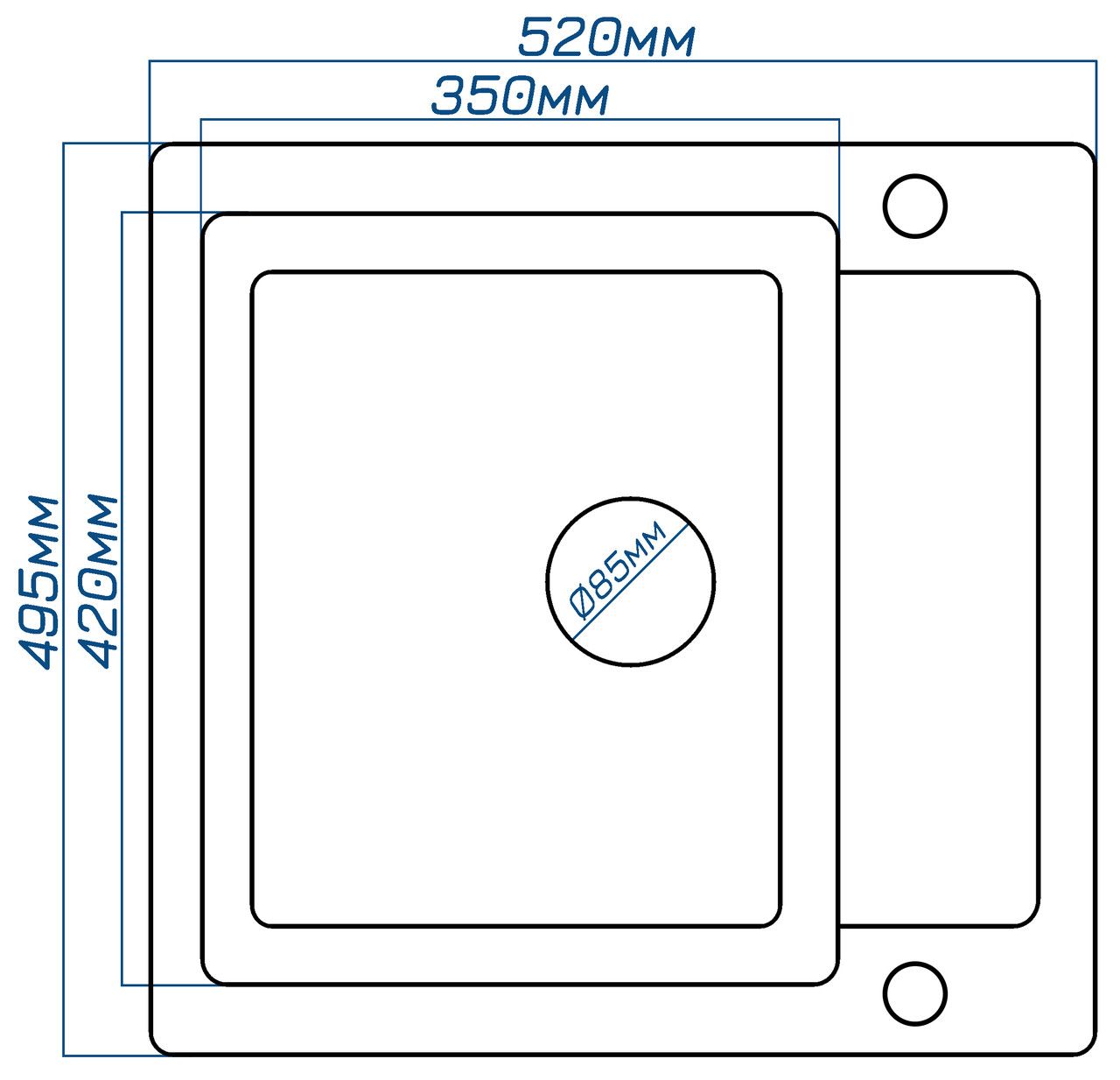 Габарити мийки (мм): 520х495х215