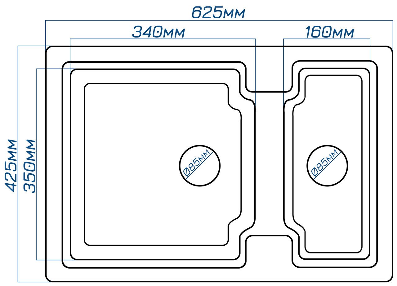 Розмір чаши (мм): 340х350х150 та 160х350x100