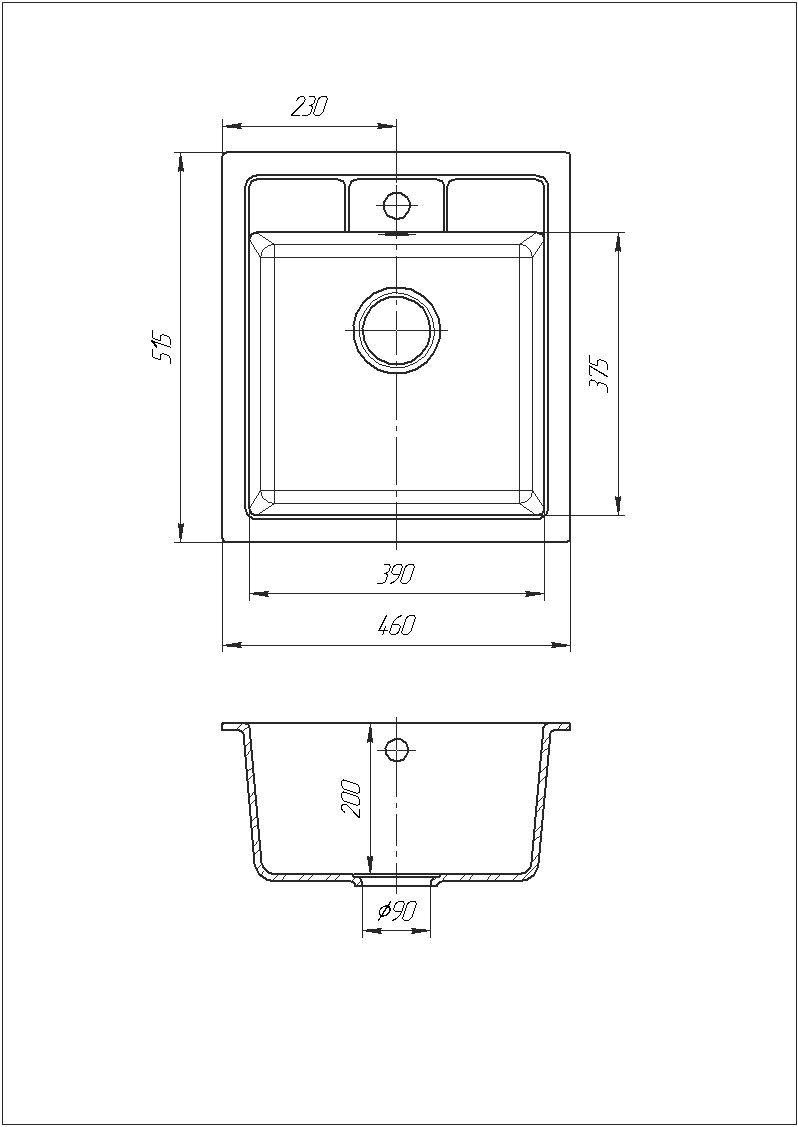 Розмір мийки: 515 х 460 х 200 мм