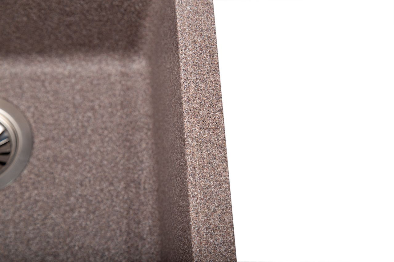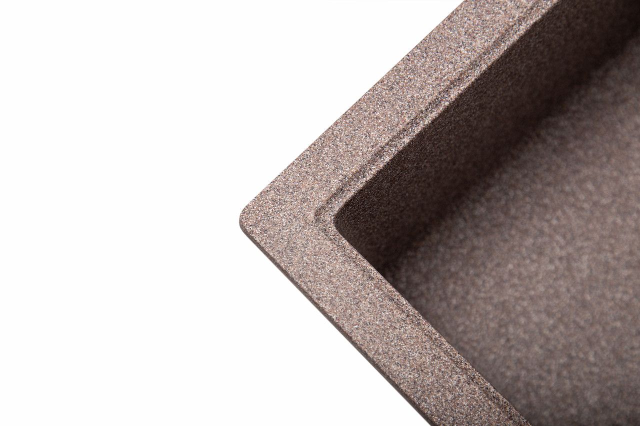 У процесі виробництва мийок Romzha концентрація кварцу на поверхні раковин збільшується, а акрилова смола зменшується. Завдяки цьому всі корисні властивості граніту - а саме стійкість до подряпин і плям - виражаються на передній частині раковини. Саме там, де це потрібно