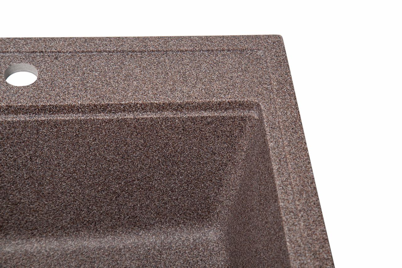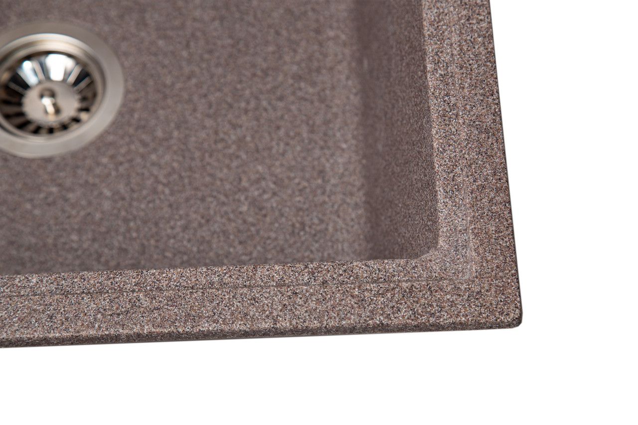 У процесі виробництва мийок Romzha концентрація кварцу на поверхні раковин збільшується, а акрилова смола зменшується. Завдяки цьому всі корисні властивості граніту - а саме стійкість до подряпин і плям - виражаються на передній частині раковини. Саме там, де це потрібно
