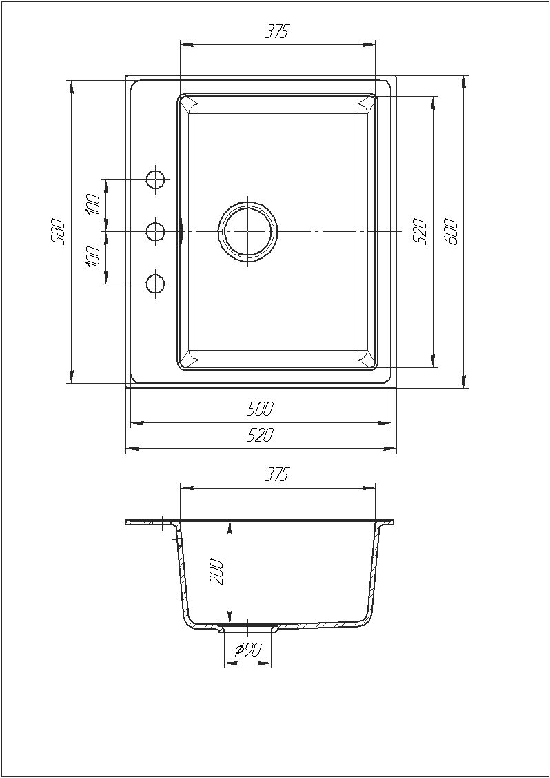 Габарити мийки:(ШхГхВ) 600 х 520 х 192 мм