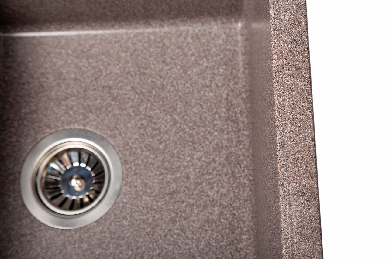 У процесі виробництва мийок Romzha концентрація кварцу на поверхні раковин збільшується, а акрилова смола зменшується. Завдяки цьому всі корисні властивості граніту - а саме стійкість до подряпин і плям - виражаються на передній частині раковини. Саме там, де це потрібно