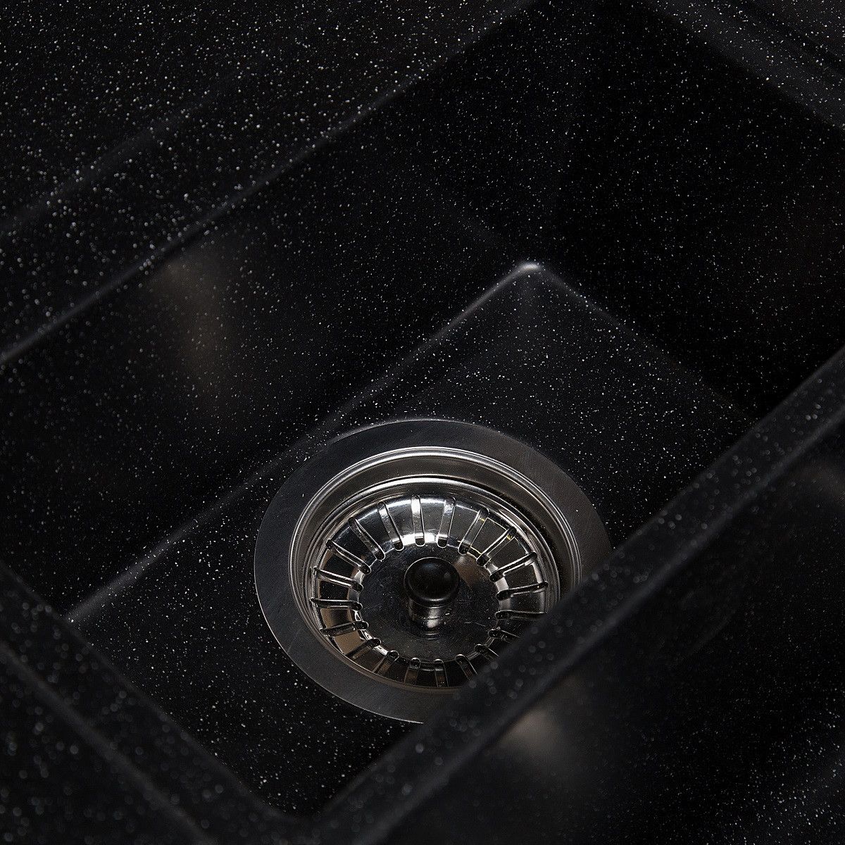 У процесі виробництва мийок Romzha концентрація кварцу на поверхні раковин збільшується, а акрилова смола зменшується. Завдяки цьому всі корисні властивості граніту - а саме стійкість до подряпин і плям - виражаються на передній частині раковини. Саме там, де це потрібно