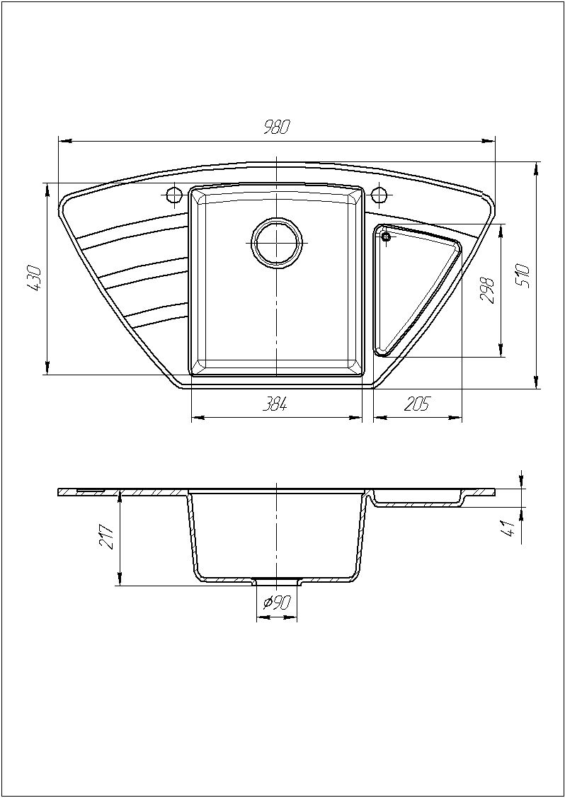 Габарити мийки:(ШхГхВ) 980 х 510 х 217 мм
