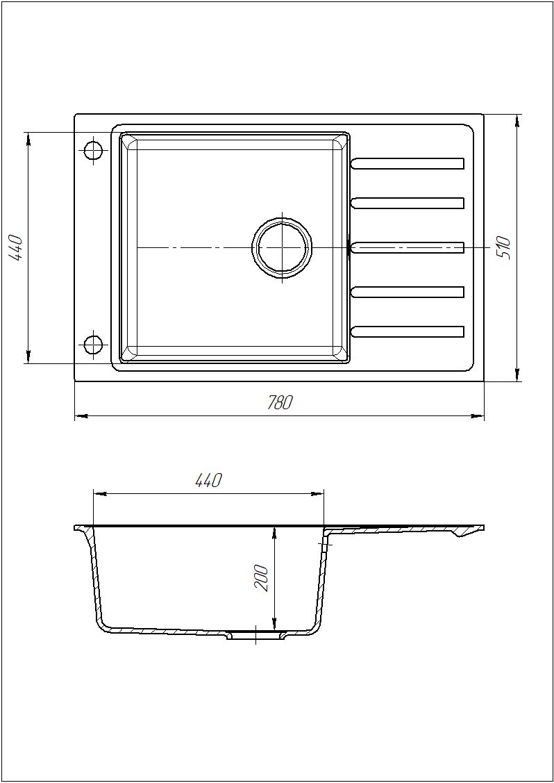 Габарити мийки:(ШхГхВ) 780 х 510 х 200 мм