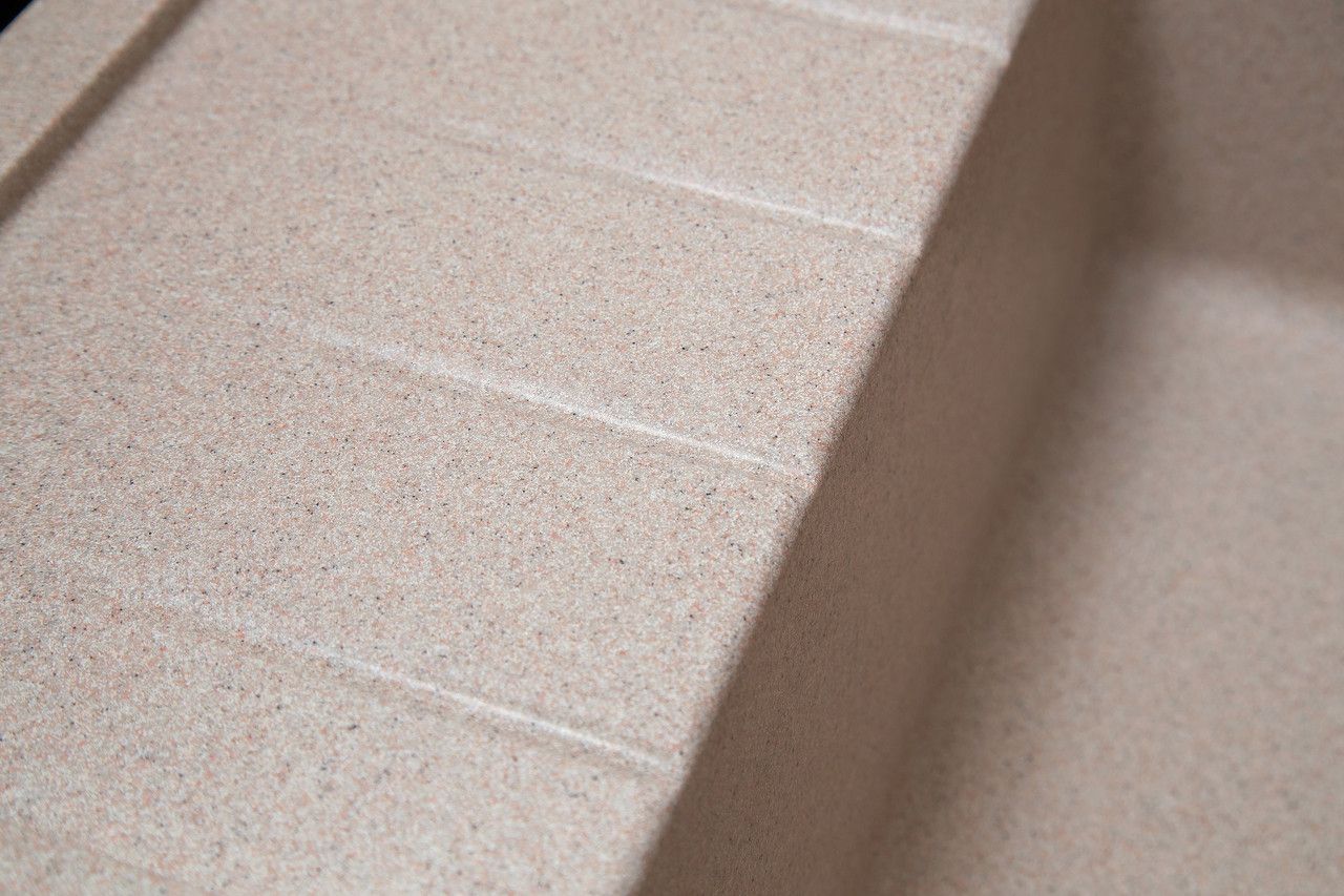 Використання дрібних частинок кварцу та вдосконалена формула для сполучного матеріалу робить поверхню раковини максимально твердим і гладким. Таку поверхню легко очистити від забруднення, що виникає в повсякденному житті
