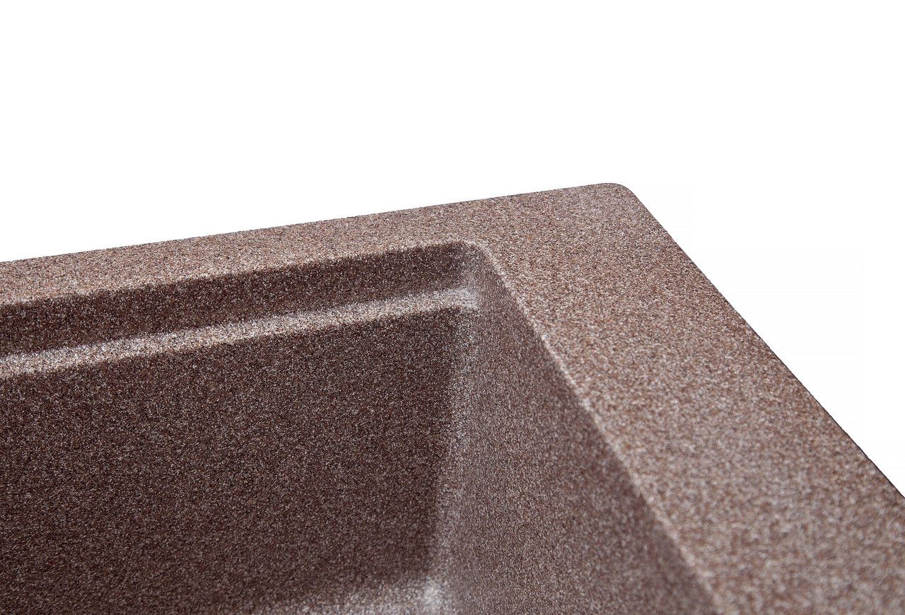 У процесі виробництва мийок Romzha концентрація кварцу на поверхні раковин збільшується, а акрилова смола зменшується. Завдяки цьому всі корисні властивості граніту - а саме стійкість до подряпин і плям - виражаються на передній частині раковини. Саме там, де це потрібно