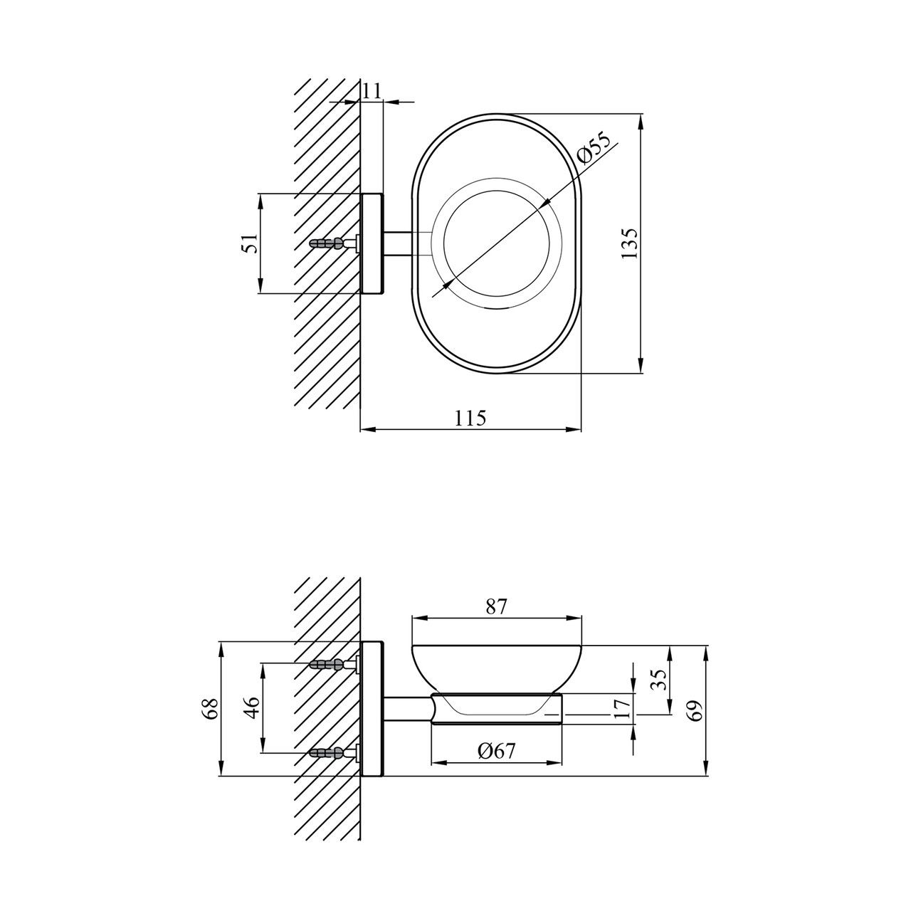 Розміри виробу (ВхШхГ), мм69х135х115