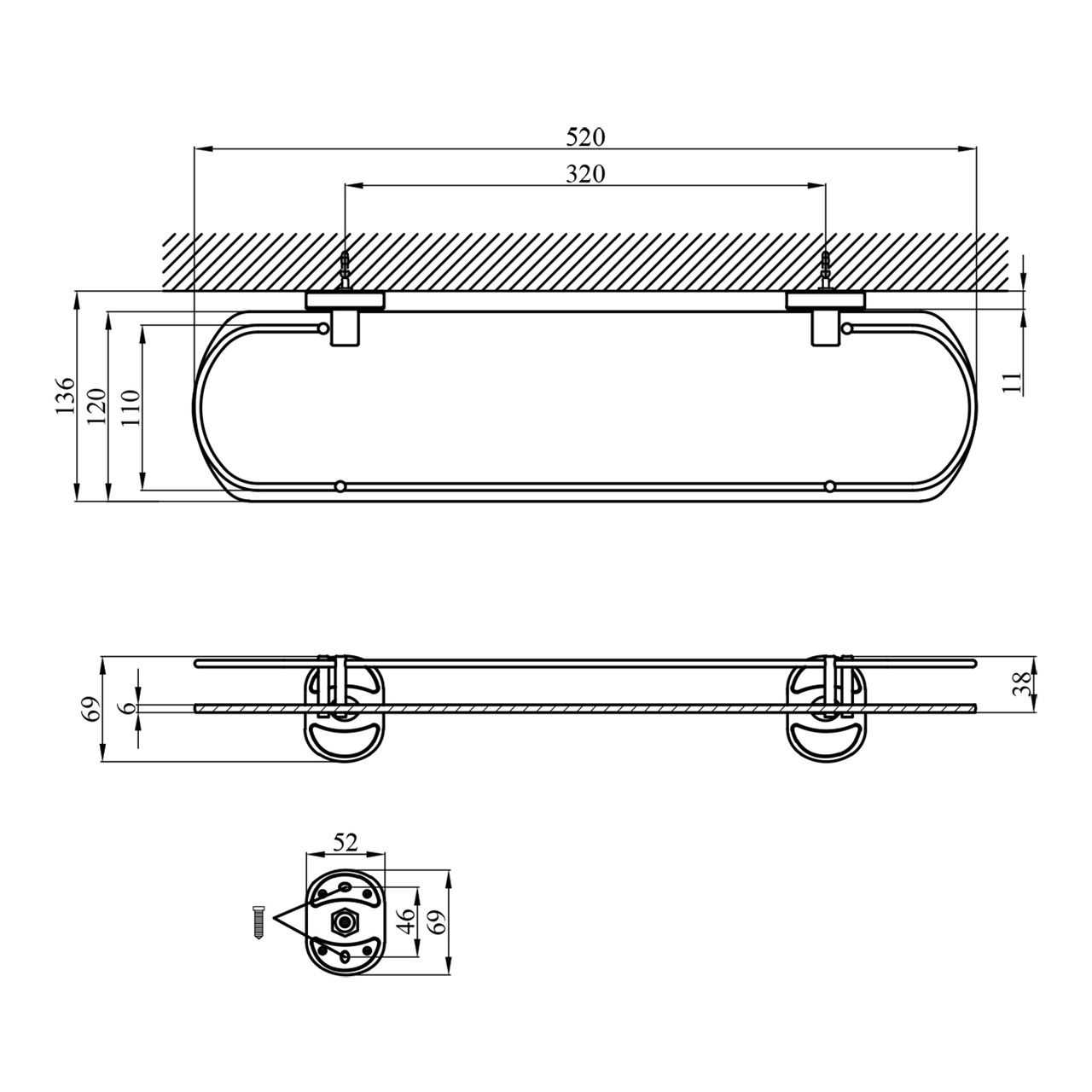 Розміри виробу (ВхШхГ), мм69х520х136