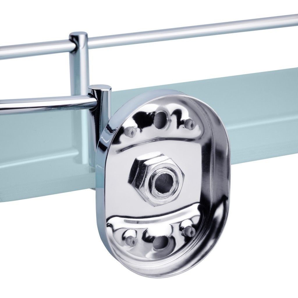 Полиця Kroner KRM Elbe-ACG2907-1 зроблена з прозорого скла з округлими краями, кріплення виготовлені з міцного металу з хромованим покриттям. Довжина полиці — 520 мм. Поличку можна розмістити під дзеркалом і зберігати на ній ванні засоби гігієни, а бортик захистить їх від випадкових падінь. Не розміщувати полицю в місцях прямого контакту з водою.