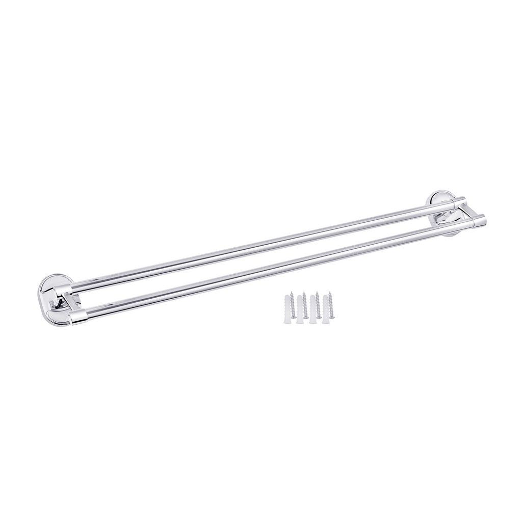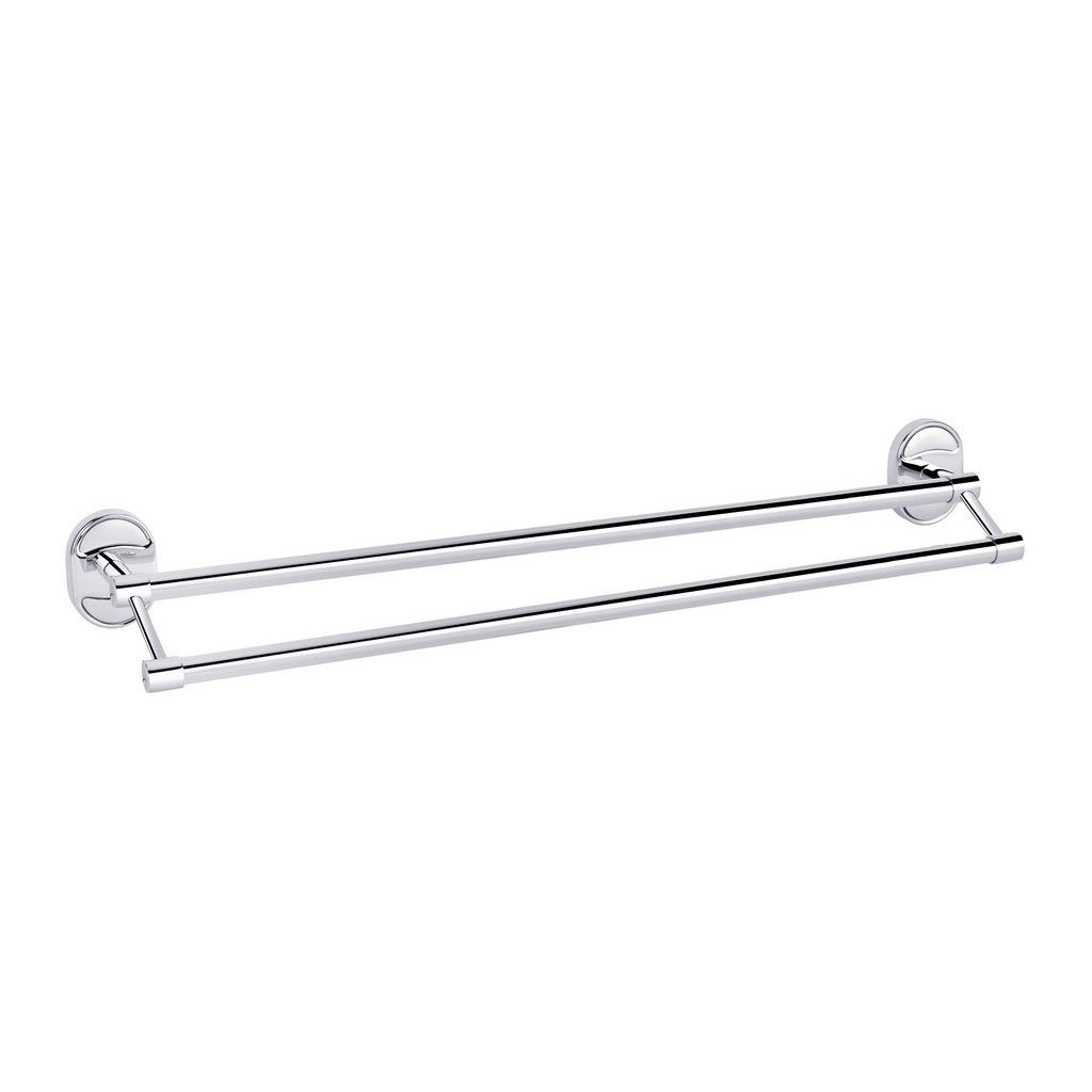 Подвійний тримач для рушників Kroner KRM Elbe-ACC2909 стане оригінальним доповненням ванної кімнати. Тримач для рушників виготовлений із міцного металу з хромованою поверхнею й має дві паралельні планки. Тримач прикрашений декоративними вставками. Довжина виробу 635 мм. Приховане кріплення дає змогу зберегти обробку, а хромоване покриття запобіжить утворенню корозії й бруду. Тримач для рушників кріпиться на стіні на бажаній висоті.