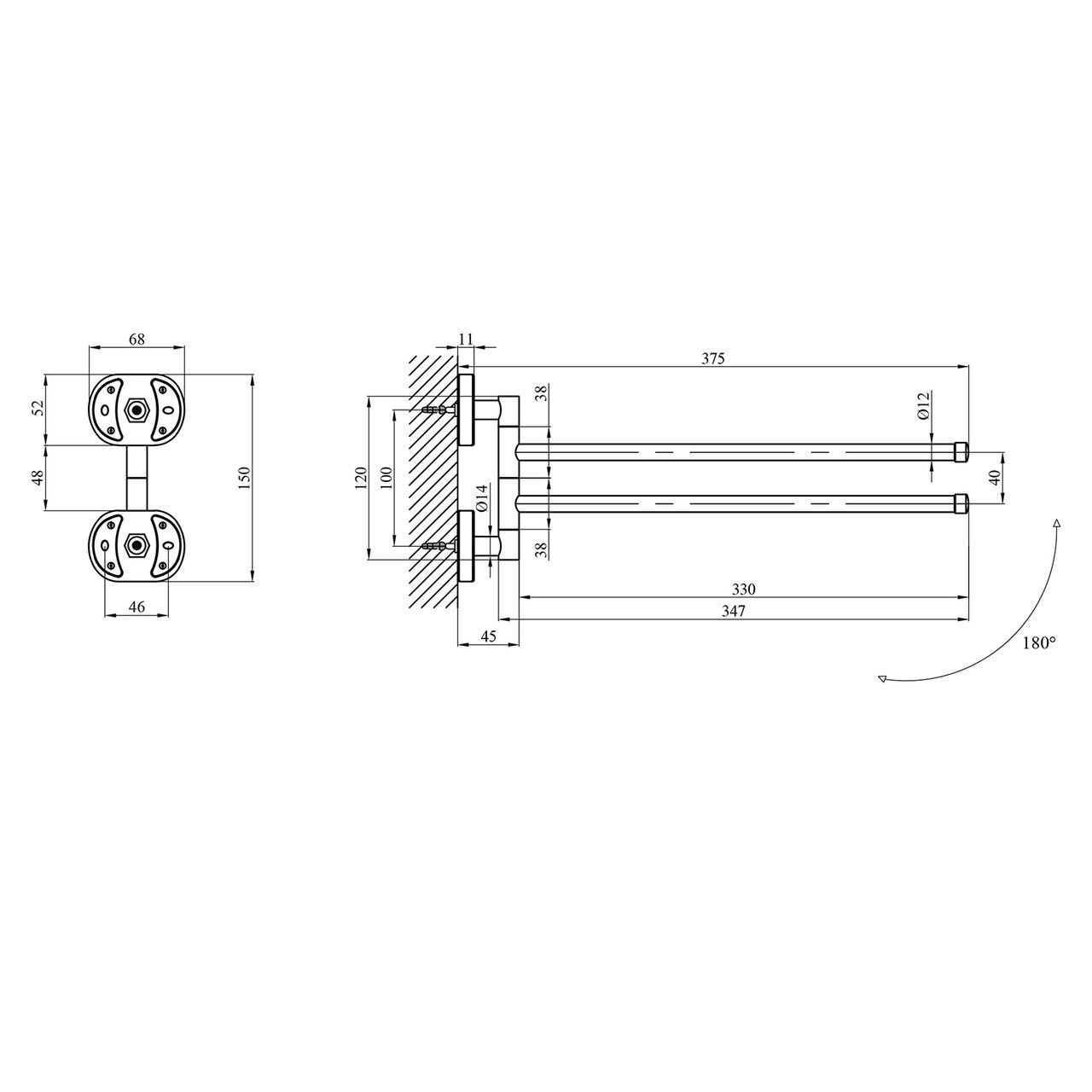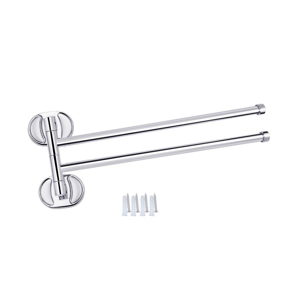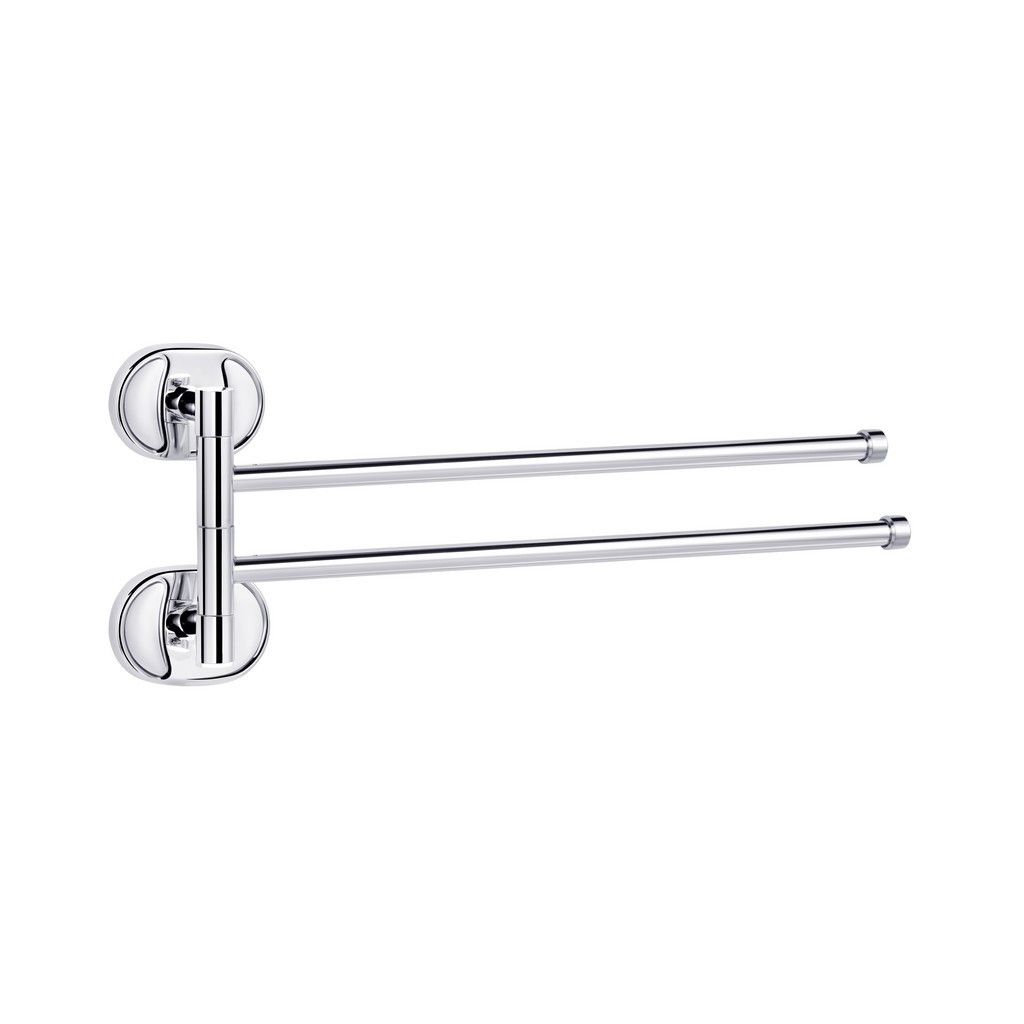 Подвійний тримач для рушників Kroner KRM Elbe-ACC2912 стане оригінальним доповненням ванної кімнати. Тримач для рушників виготовлений із міцного металу з хромованою поверхнею й має два поворотні стрижні, на які можна розмістити два рушники. Довжина виробу 375 мм. Приховане кріплення дає змогу зберегти обробку, а хромоване покриття запобіжить утворенню корозії й бруду. Тримач для рушників кріпиться на стіні на бажаній висоті.
