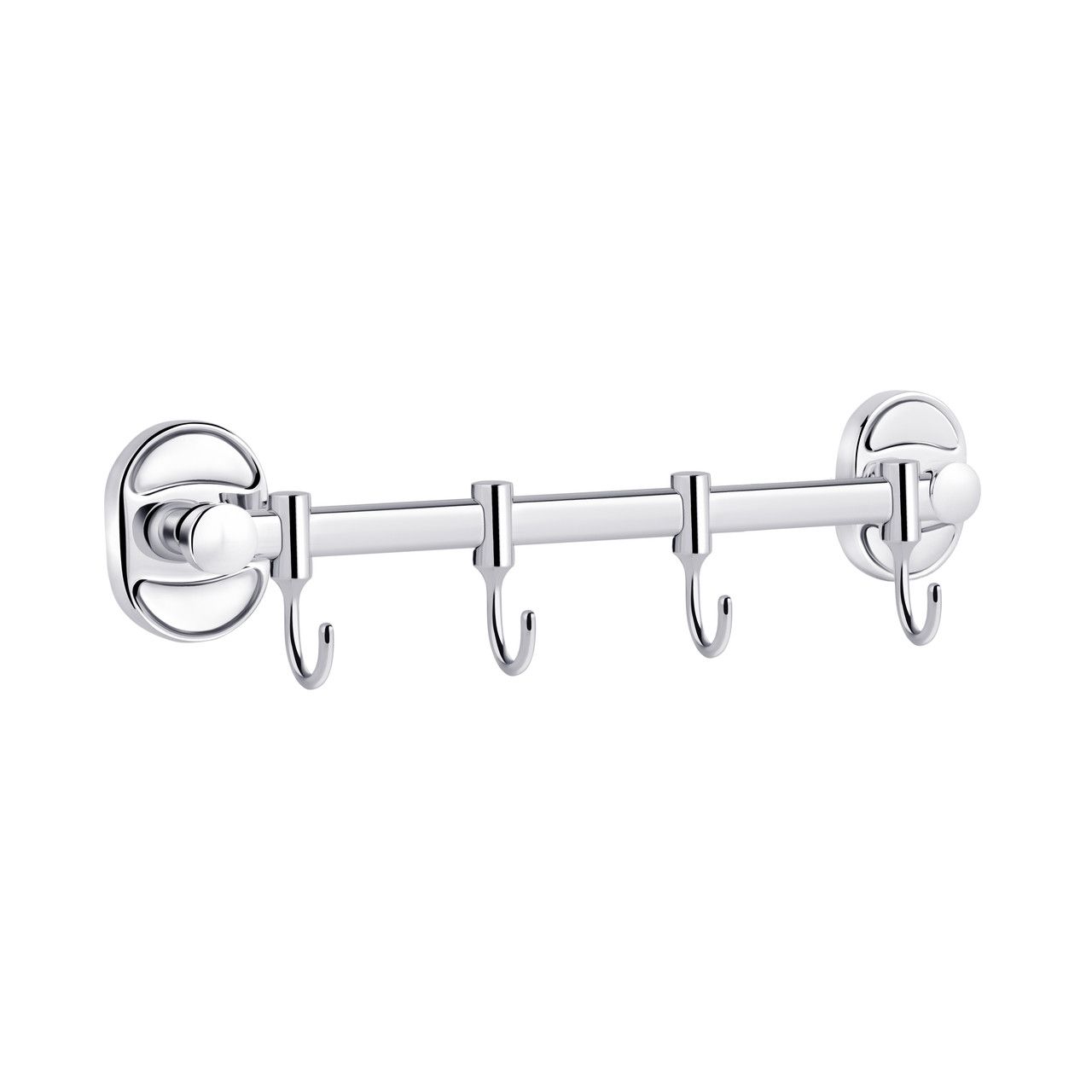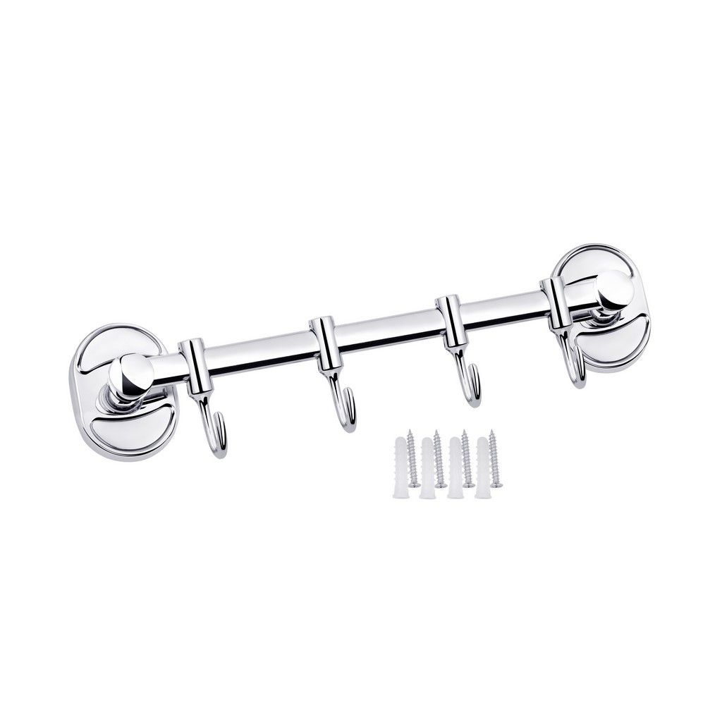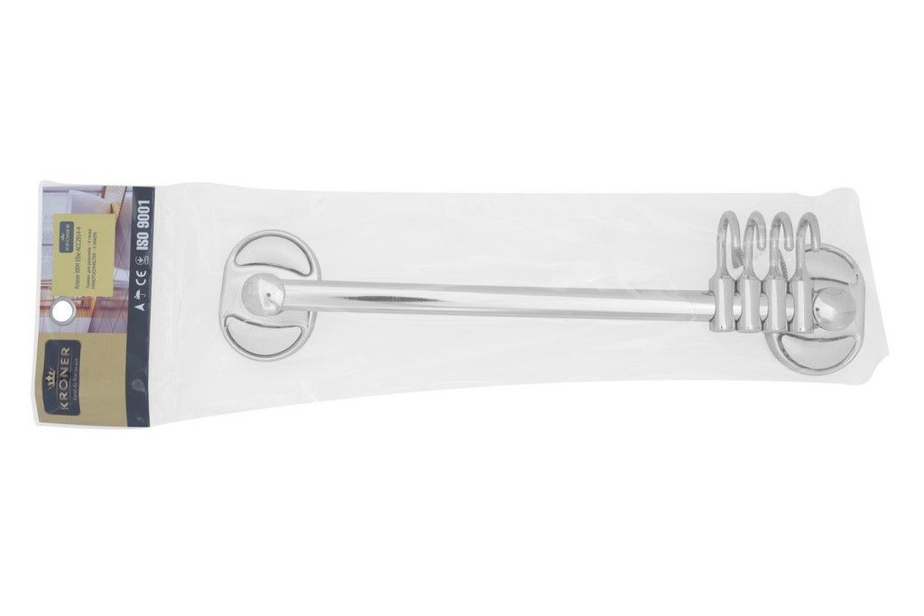 Тримач для рушників і халатів Kroner KRM Elbe-ACC2914-4 зроблений у формі стрижня з чотирма пересувними гачками на ньому. Тримач для рушників виготовлений із міцного металу з хромованою поверхнею. Приховане кріплення дає змогу зберегти обробку, а хромоване покриття запобіжить утворенню корозії й бруду. Тримач для рушників кріпиться на стіні на бажаній висоті.