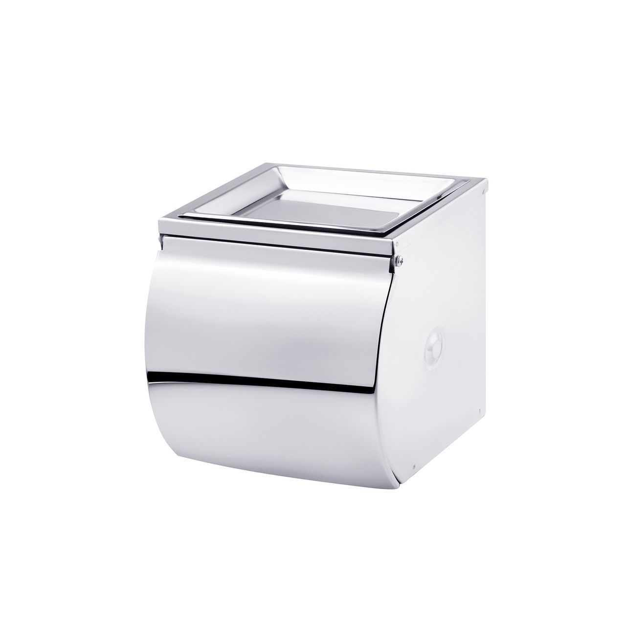 Тримач для туалетного паперу з кришкою KRM Rizze-ACC300 від Kroner виготовлений із хромованого металу. Кришка й бічні панелі захищають рулон туалетного паперу від бризок і пилу. Положення стрижня фіксоване. На верхній панелі передбачена ємність для освіжувача повітря, що дає змогу тримати необхідні предмети завжди під рукою й прибрати зайве з підлоги для зручного прибирання.
