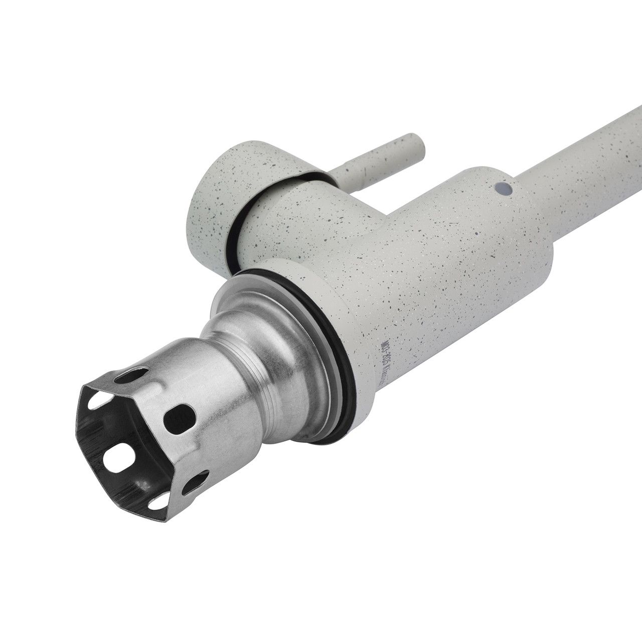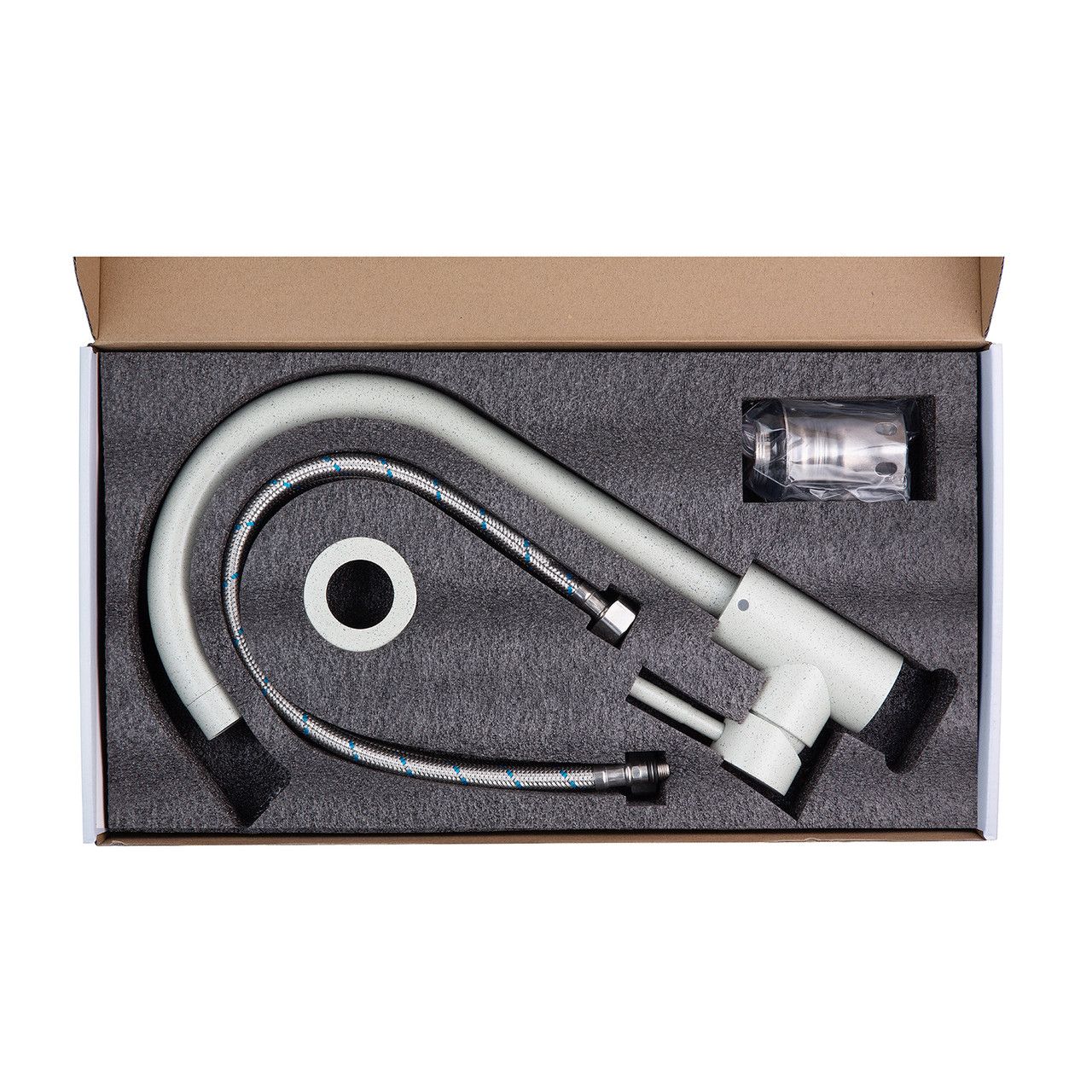 Змішувач для кухні Kroner KRP Edelstahl Klassisch — GRA035 — ідеальний вибір для вашої кухні. Виготовлений із неіржавкої сталі, гарантує міцність і довговічність. Має привабливий матовий сірий колір, що надає йому елегантності. Змішувач обладнаний картриджним механізмом змішування, що дає змогу зручно регулювати температуру води. Його унікальна U-подібна форма виливу забезпечує зручність під час наповнення посуду або миття продуктів. Насолоджуйтеся функціональністю й стилем змішувача Kroner.