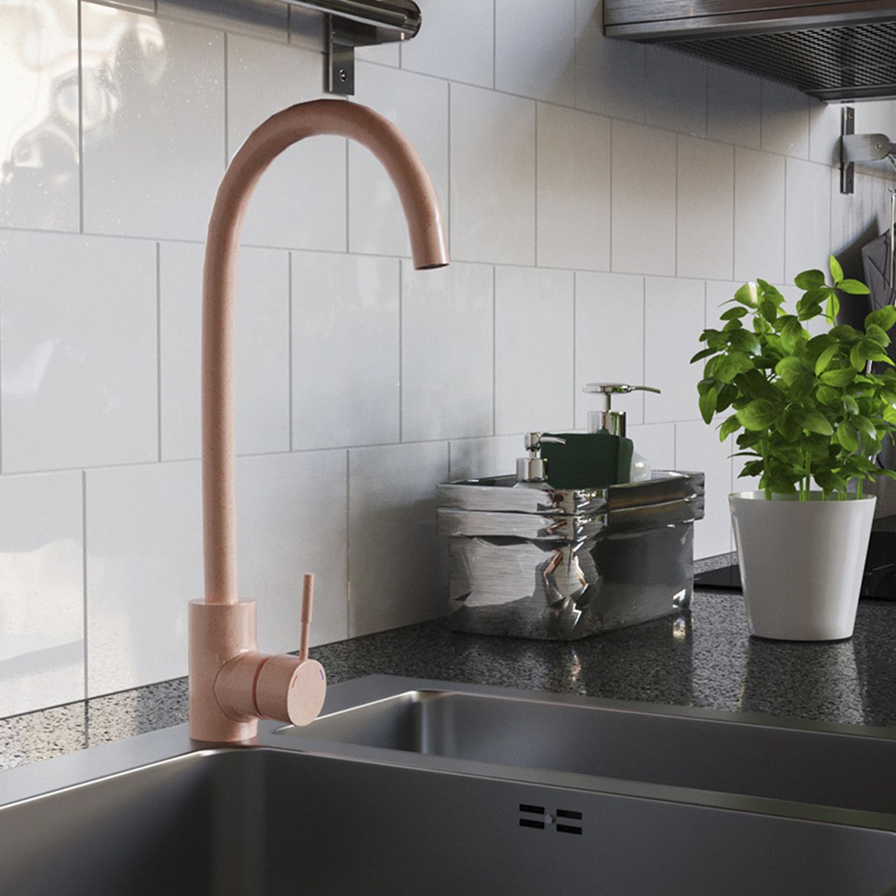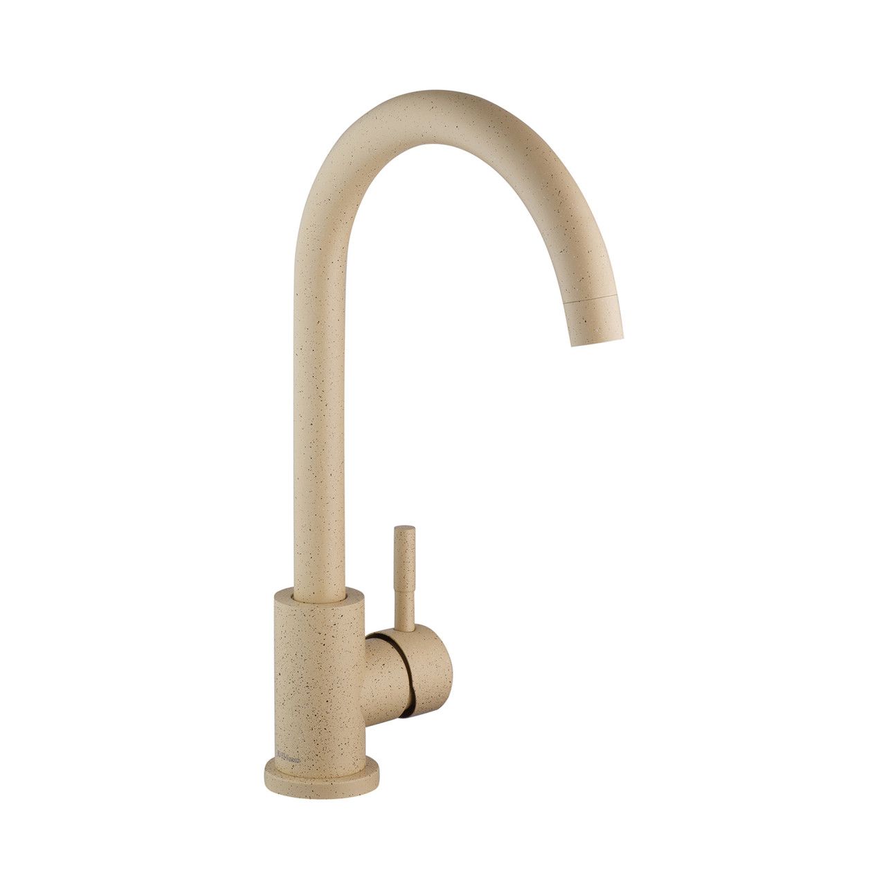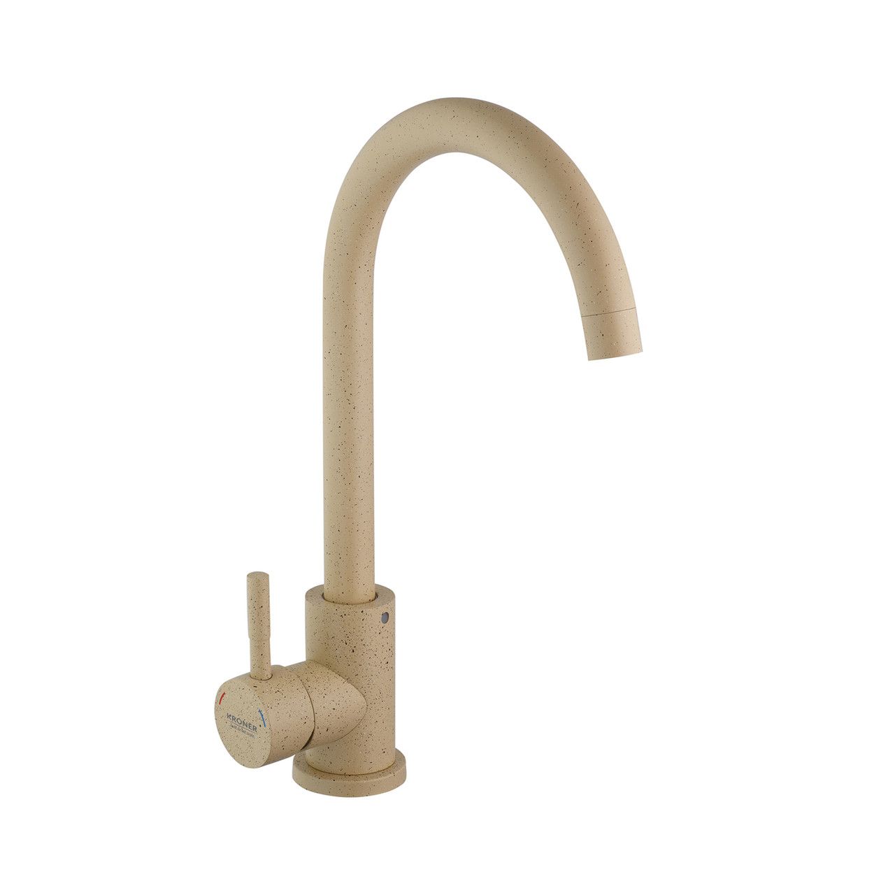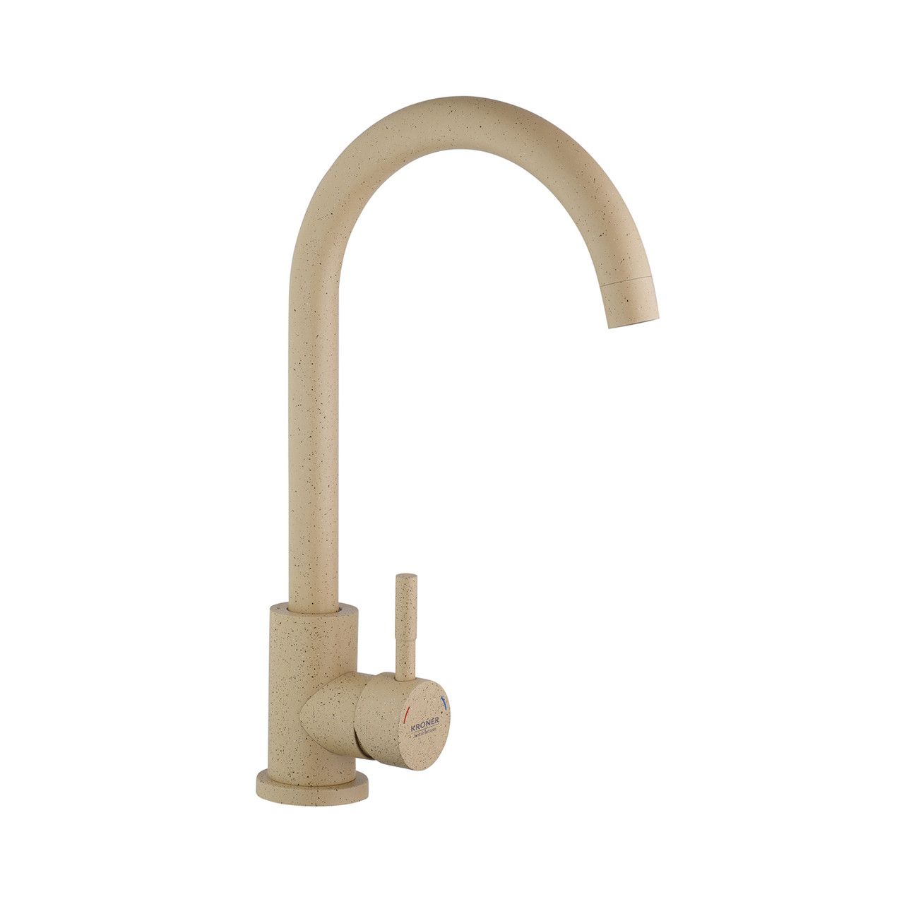 Змішувач для кухні Kroner KRP Edelstahl Klassisch — MAR035 — ідеальний вибір для вашої кухні. Виготовлений із неіржавкої сталі, гарантує міцність і довговічність. Має привабливий матовий пісочний колір, що надає йому елегантності. Змішувач обладнаний картриджним механізмом змішування, що дає змогу зручно регулювати температуру води. Його унікальна U-подібна форма виливу забезпечує зручність під час наповнення посуду або миття продуктів. Насолоджуйтеся функціональністю й стилем змішувача Kroner.