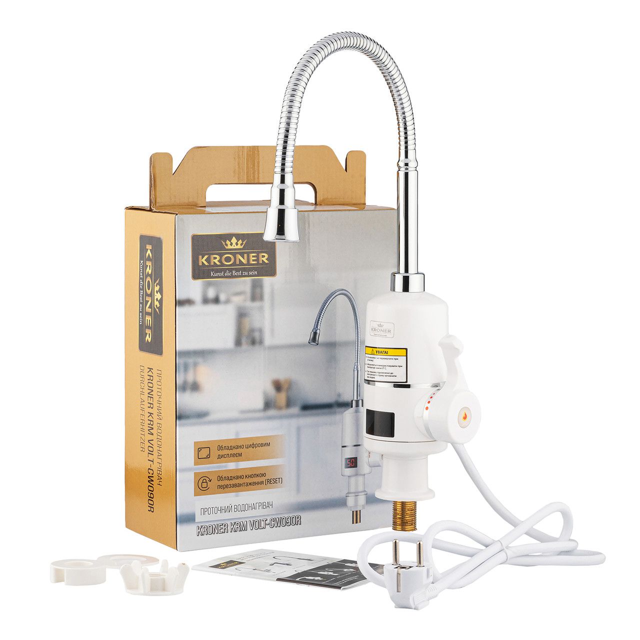Проточний водонагрівач Kroner KRM Volt — CW090R з дисплеєм