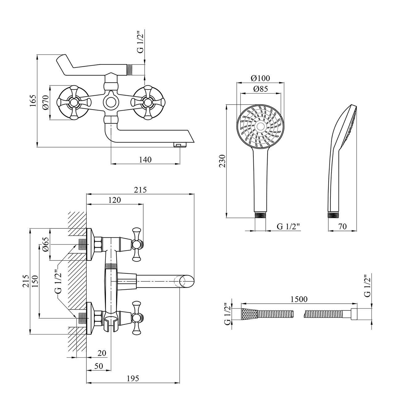 ОбладнанняСмеситель, лейка для ручного душа, душевой шланг, кронштейн для ручного душа, крепежи, инструкция.