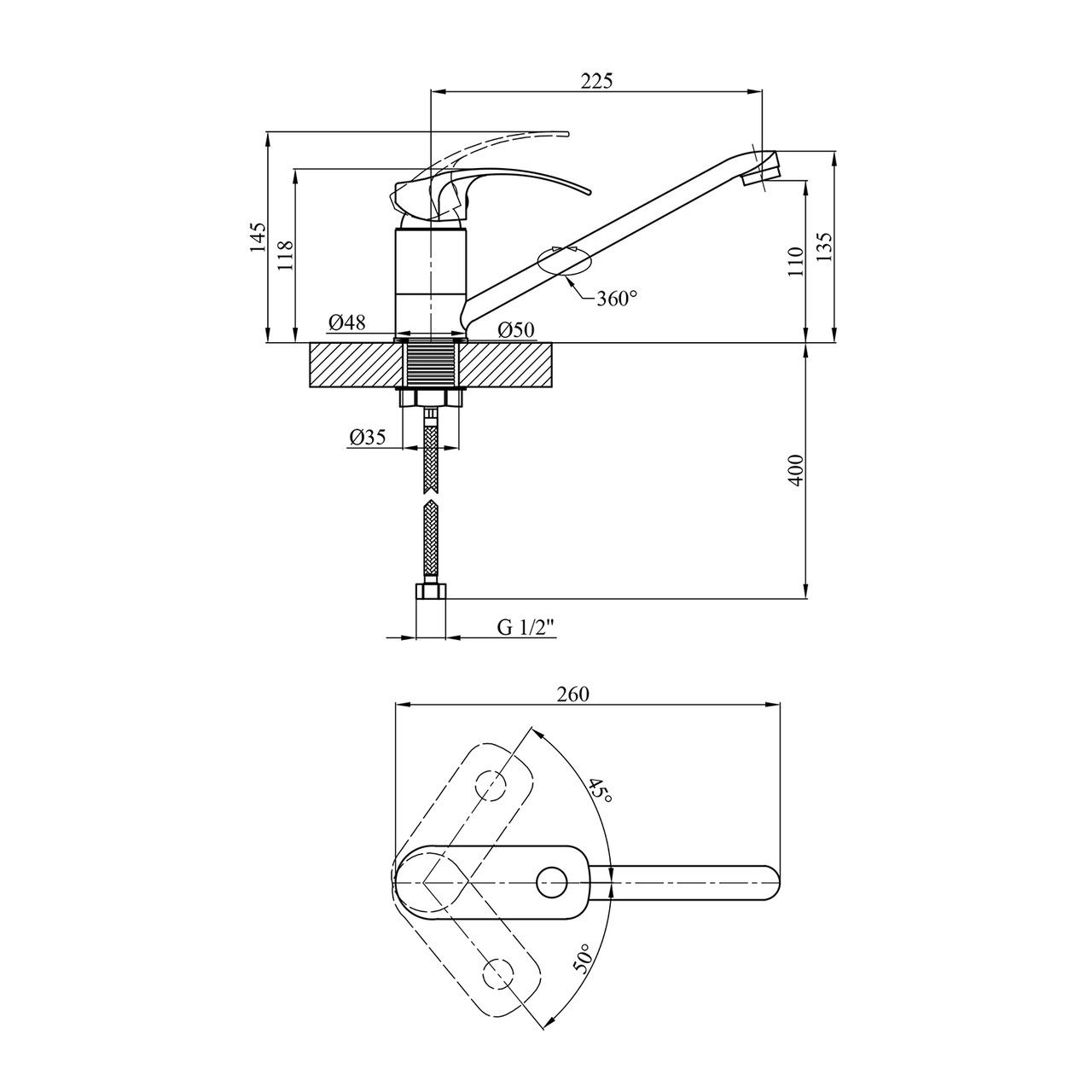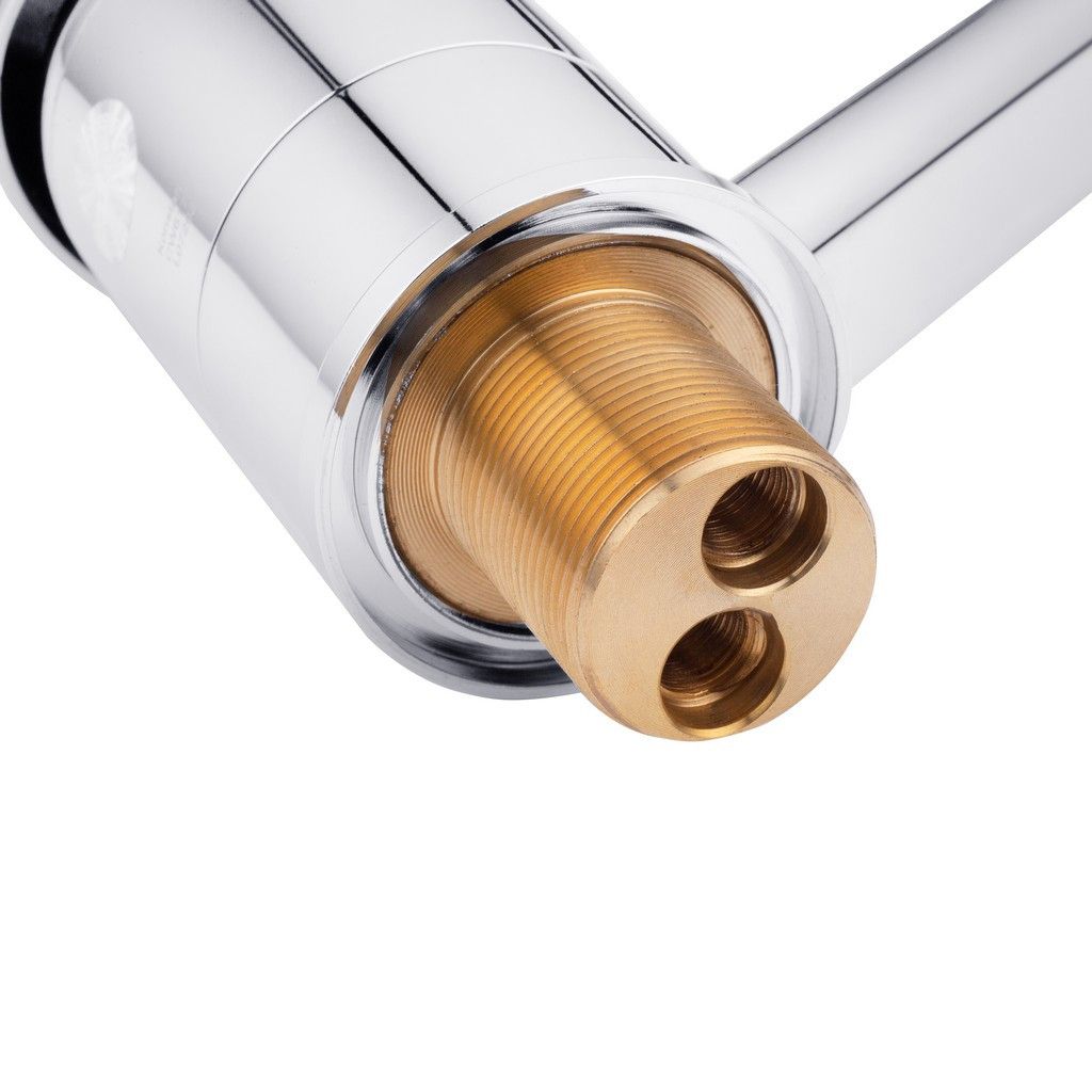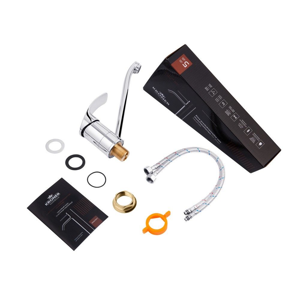 Змішувач для кухні Kroner KRP Konstante — C030 — ідеальний вибір для вашої кухні. Виготовлений із високоякісної латуні, гарантує міцність і довговічність. Має привабливий глянсовий хромований колір, що надає йому елегантності. Змішувач обладнаний картриджним механізмом змішування, що дає змогу зручно регулювати температуру води. Його унікальна V-подібна форма виливу забезпечує зручність під час наповнення посуду або миття продуктів. Насолоджуйтеся функціональністю й стилем змішувача Kroner.