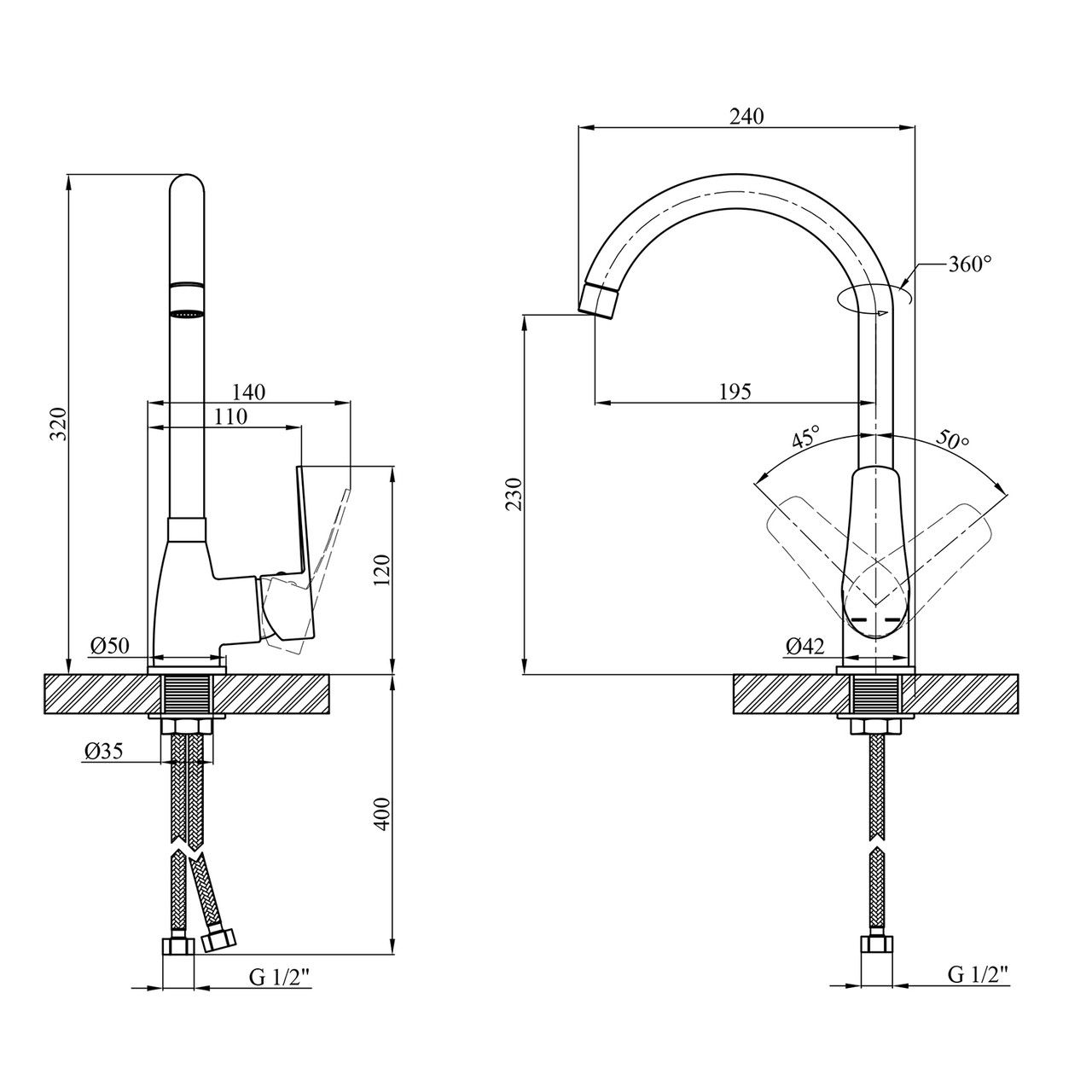 Діаметр підключення шланга1/2ь