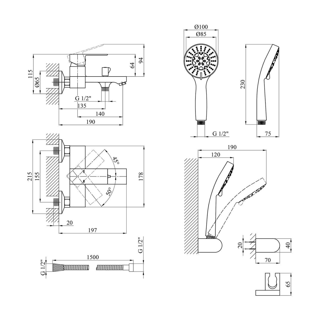 ОбладнанняСмеситель, лейка для ручного душа, душевой шланг, кронштейн для ручного душа, крепежи, инструкция.