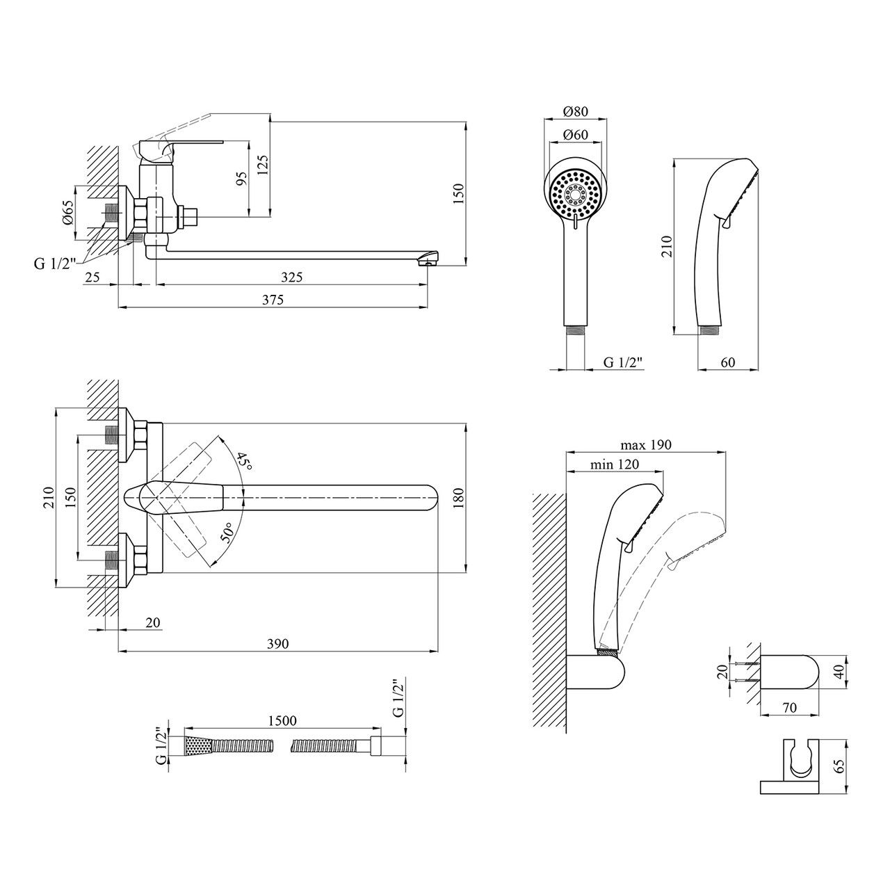 Длина душевого шланга, мм1500