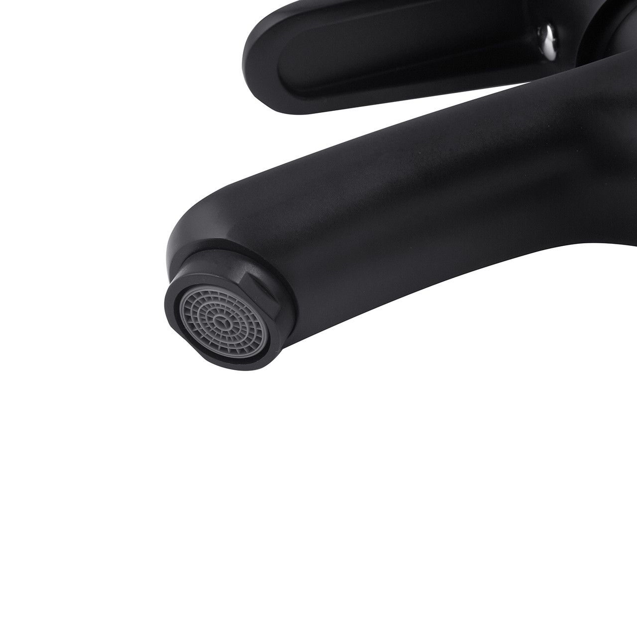 Змішувач для раковини Kroner KRM Elbe — SCH010 — стильний і практичний вибір для вашої ванної кімнати. Виготовлений із високоякісного силуміну, гарантує довговічність і надійність. Привабливий матовий чорний колір надає йому елегантності та сучасного вигляду. Картриджний механізм змішування забезпечує плавне регулювання температури води. Врізний спосіб монтажу дає змогу зберігати естетичний вигляд раковини. Змішувач Kroner — це стильний акцент, який додасть вашому дизайну особливої гармонії та розкоші.