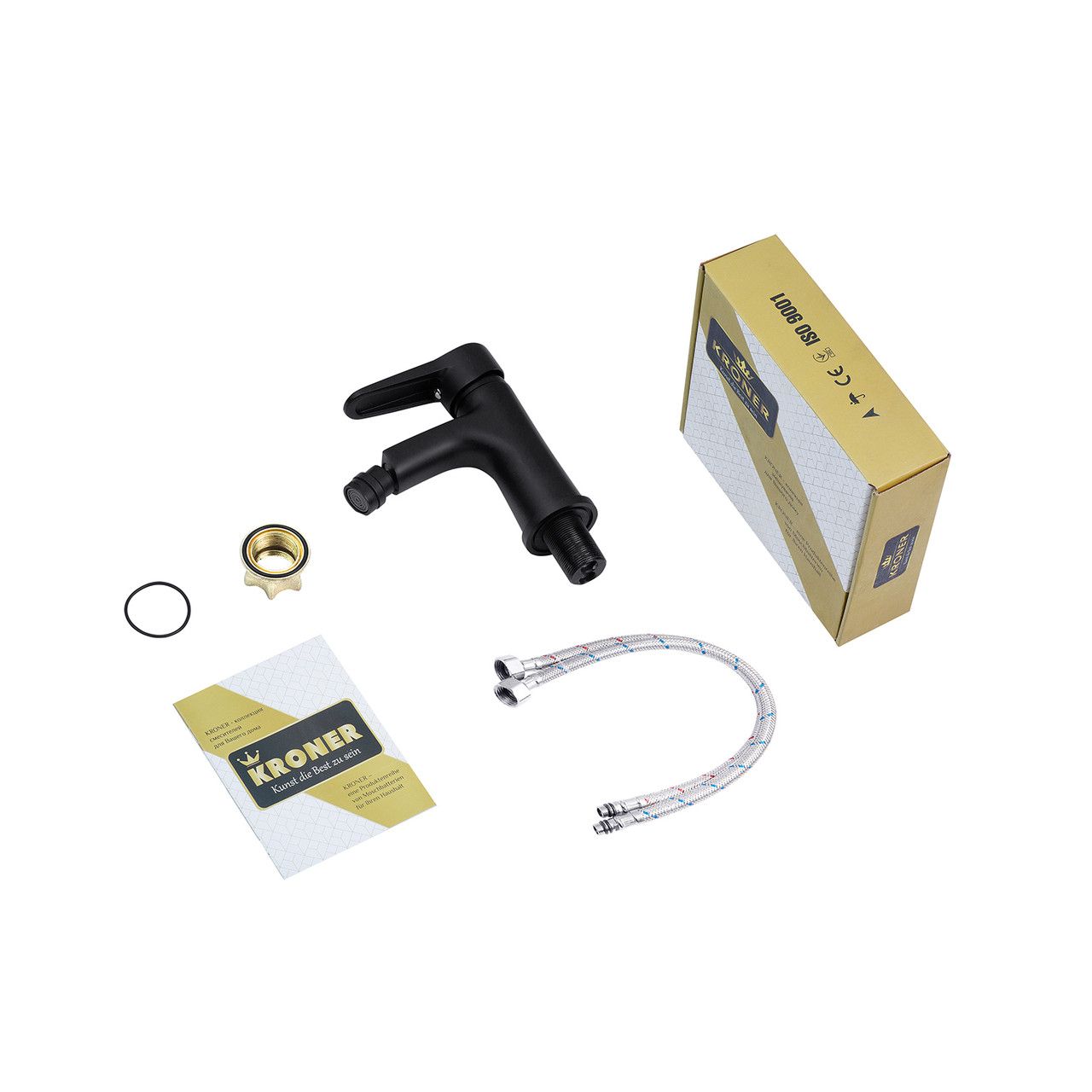 Змішувач для біде Kroner KRM Elbe — SCH020 — ідеальний вибір для вашої ванної кімнати, надаючи їй стильного вигляду та функціональності. Змішувач врізного монтажу легко встановлюється і його видимість обмежується, що створює естетичний вигляд простору. Виготовлений із міцного силуміну, відомого своєю довговічністю та стійкістю до корозії. Механізм на основі картриджа дає змогу плавне перемикання між холодною й гарячою водою. Матова поверхня в поєднанні з чорним кольором надає елегантності. Змішувач Kroner додасть комфорту і краси вашій ванній кімнаті.