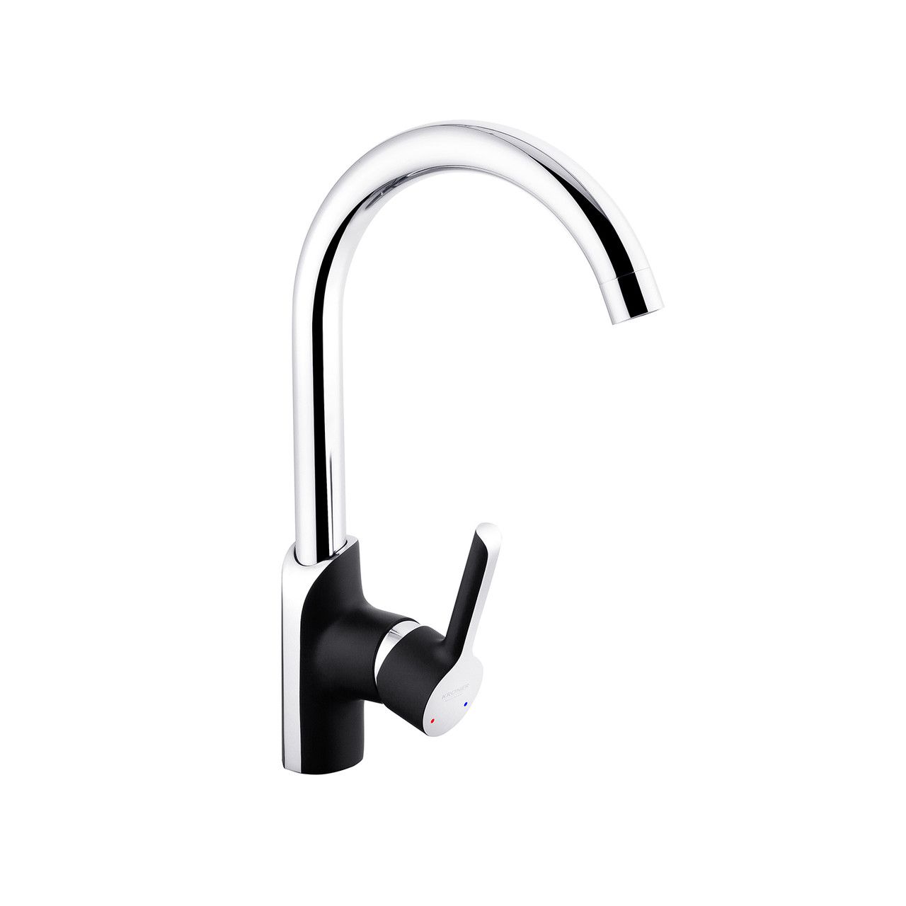 Змішувач для кухні Kroner KRP Essen — SCH030 — ідеальний вибір для вашої кухні. Виготовлений із високоякісної латуні, гарантує міцність і довговічність. Має привабливу глянсово-матову поверхню хромовано-чорного кольору, що надає йому елегантності. Змішувач обладнаний картриджним механізмом змішування, що дає змогу зручно регулювати температуру води. Його унікальна U-подібна форма виливу забезпечує зручність під час наповнення посуду або миття продуктів. Насолоджуйтеся функціональністю й стилем змішувача Kroner.