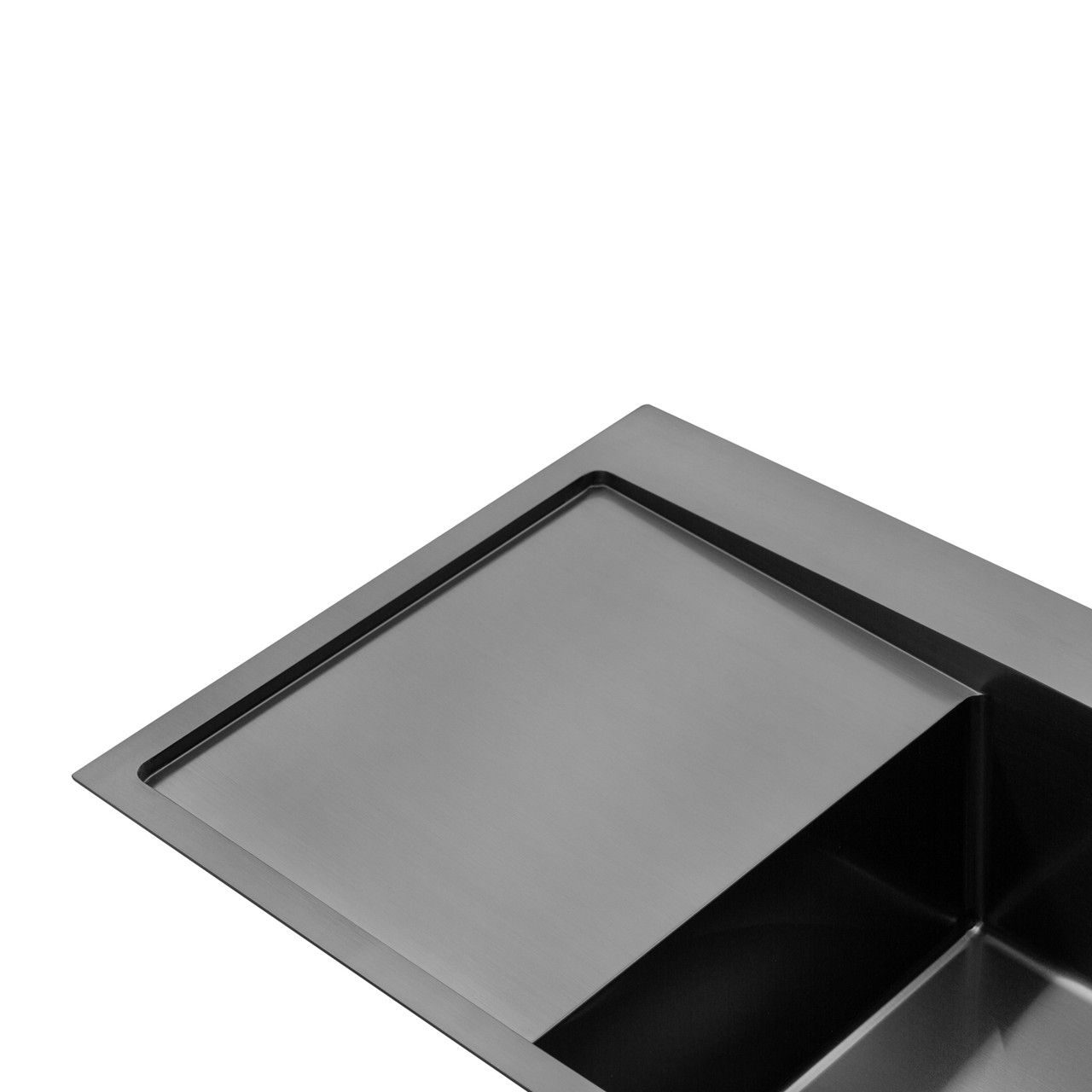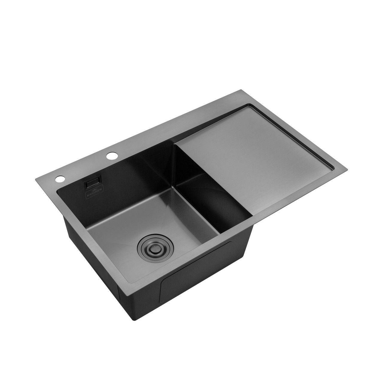 Мийка Kroner KRP PVD Schwarze-7849LHM виготовлена з високоякісної нержавіючої сталі харчової марки, що дозволить виробу прослужити довгі роки. Відмінна якість та дизайн миття дозволять задовольнити найвищі вимоги та створити затишок у вашому будинку! Випуск сифону виготовлений з нержавіючої сталі зі сміттєзбірником у формі цебра і закривається пробкою-кришкою, яку можна використовувати за необхідності набрати води в чашу. Мийка обладнана переливом для відведення води в екстрених випадках. Інтегрований спосіб монтажу дозволяє встановлювати мийку в будь-якому можливому варіанті, класичному врізному - над стільнею, інтегрованому - мийка встановлюється в рівень зі стільнею, і монтаж під стільню.